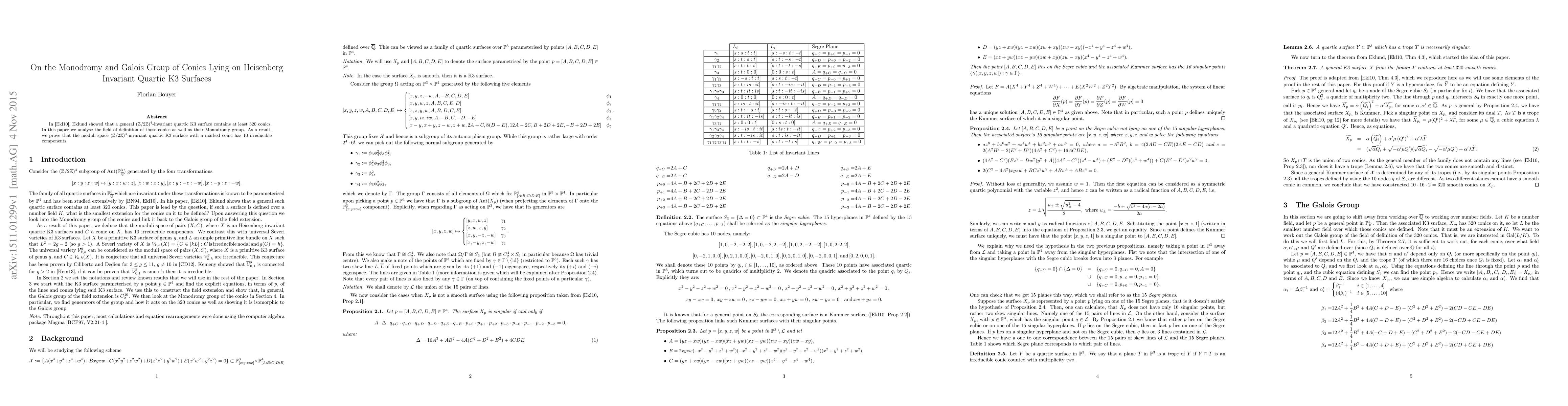 This paper investigates the monodromy and Galois group of conics on Heisenberg invariant quartic K3 surfaces, proving that the moduli space of these surfaces with a marked conic has $10$ irreducible components. The study builds on Eklund's prior work showing the existence of at least $320$ conics on such surfaces.