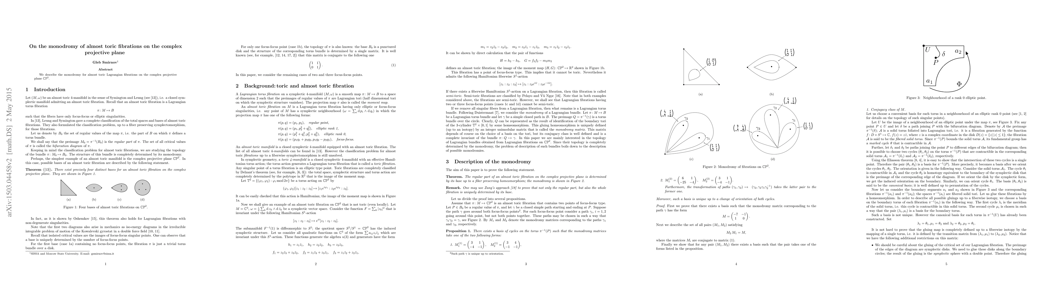 Summary: This paper explores the monodromy behavior of almost toric Lagrangian fibrations on the complex projective plane, providing a detailed description of their structural properties.