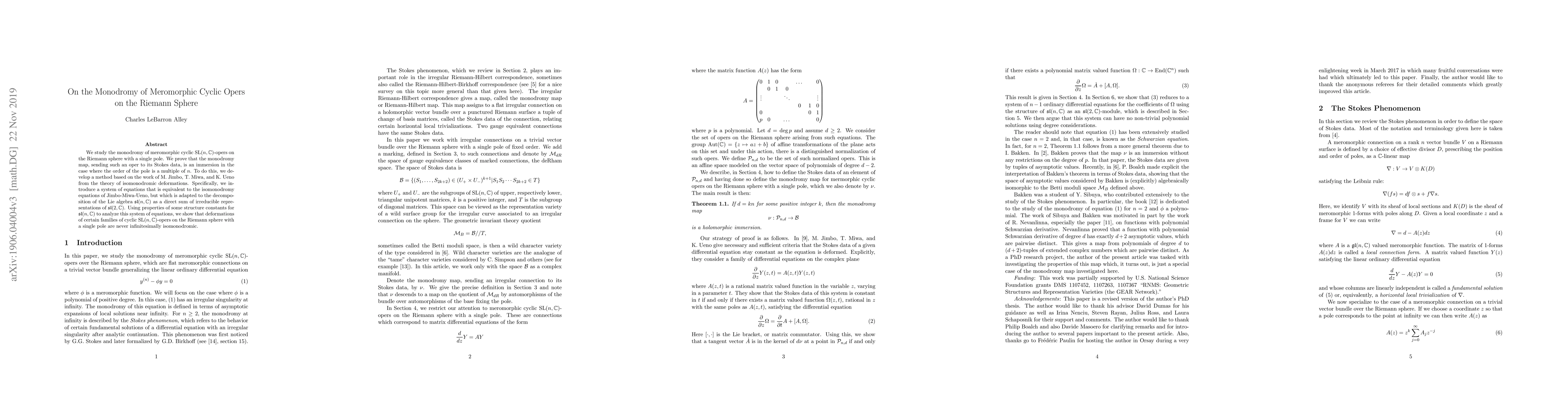 We study the monodromy of meromorphic cyclic $\mathrm{SL}(n,\mathbb{C})$-opers on the Riemann sphere with a single pole. We prove that the monodromy map, sending such an oper to its Stokes data, is an immersion in the case where the order of the pole is a multiple of $n$. To do this, we develop a method based on the work of M. Jimbo, T. Miwa, and K. Ueno from the theory of isomonodromic deformations. Specifically, we introduce a system of equations that is equivalent to the isomonodromy equations of Jimbo-Miwa-Ueno, but which is adapted to the decomposition of the Lie algebra $\mathfrak{sl}(n,\mathbb{C})$ as a direct sum of irreducible representations of $\mathfrak{sl}(2,\mathbb{C})$. Using properties of some structure constants for $\mathfrak{sl}(n,\mathbb{C})$ to analyze this system of equations, we show that deformations of certain families of cyclic $\mathrm{SL}(n,\mathbb{C})$-opers on the Riemann sphere with a single pole are never infinitesimally isomonodromic.