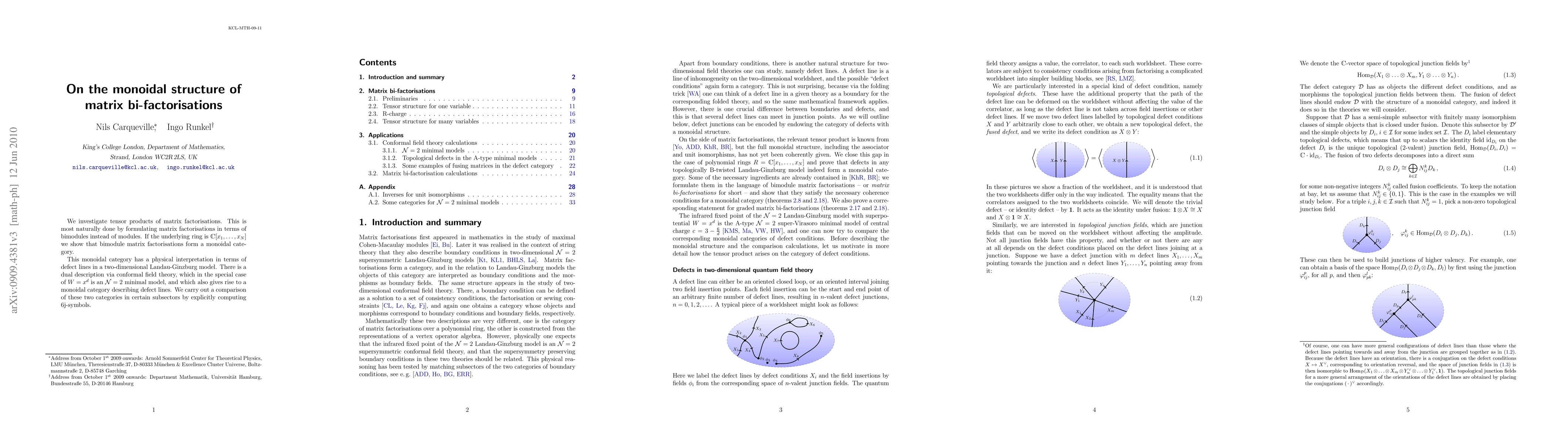 We investigate tensor products of matrix factorisations. This is most naturally done by formulating matrix factorisations in terms of bimodules instead of modules. If the underlying ring is C[x_1,...,x_N] we show that bimodule matrix factorisations form a monoidal category. This monoidal category has a physical interpretation in terms of defect lines in a two-dimensional Landau-Ginzburg model. There is a dual description via conformal field theory, which in the special case of W=x^d is an N=2 minimal model, and which also gives rise to a monoidal category describing defect lines. We carry out a comparison of these two categories in certain subsectors by explicitly computing 6j-symbols.