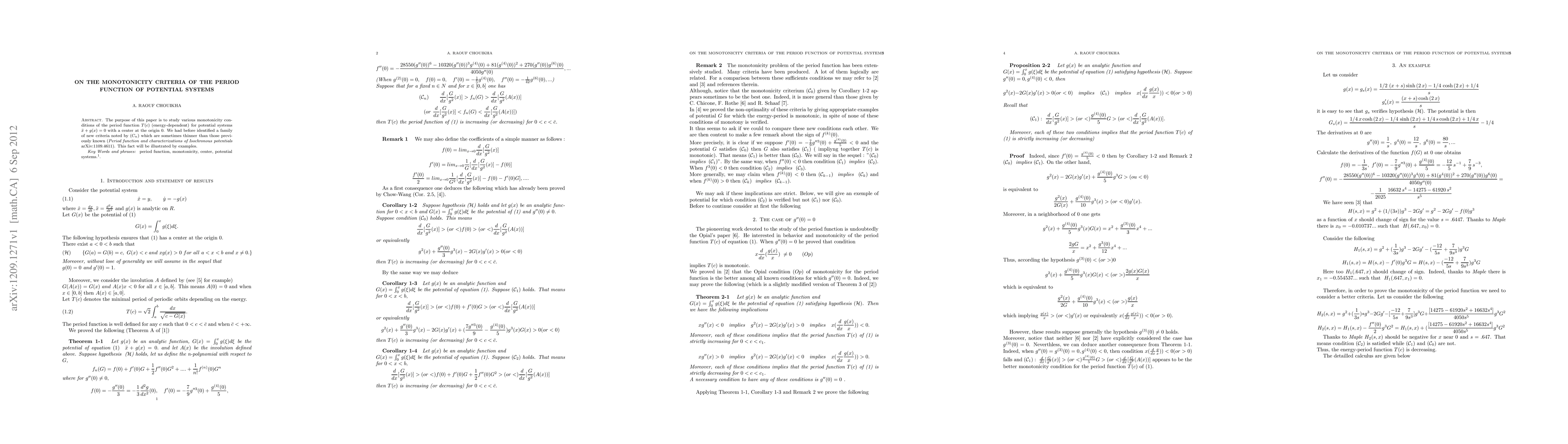 This paper investigates new monotonicity criteria for the period function of potential systems, providing a more efficient way to analyze their behavior. It builds upon previous findings and offers examples to illustrate its key concepts.