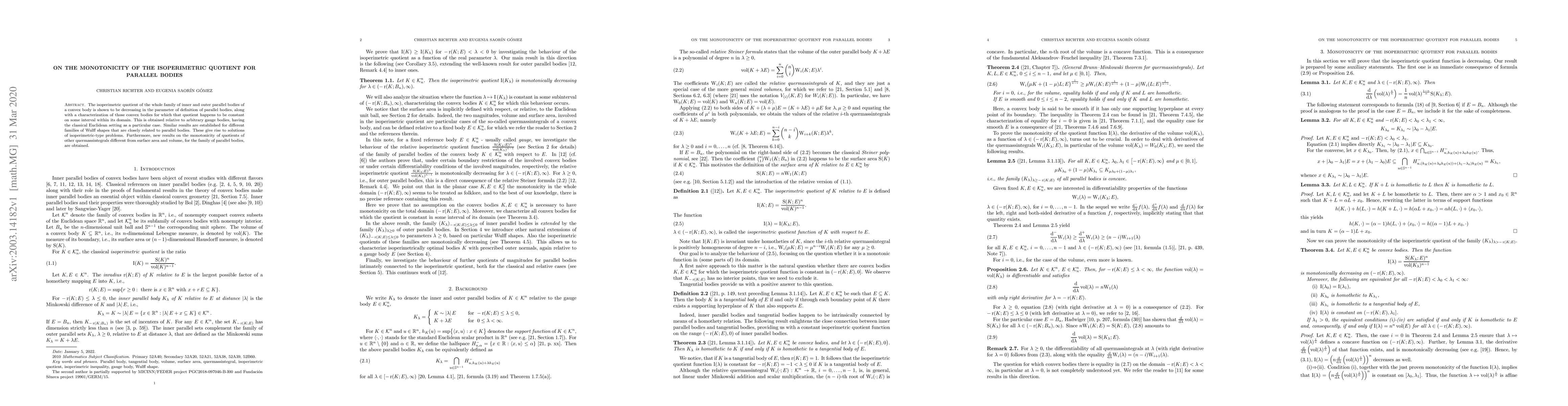 The paper demonstrates that the isoperimetric quotient for parallel bodies decreases with the parameter defining the parallel bodies, and characterizes convex bodies where this quotient remains constant over certain intervals. It also extends these findings to related Wulff shapes and other quermassintegrals.
