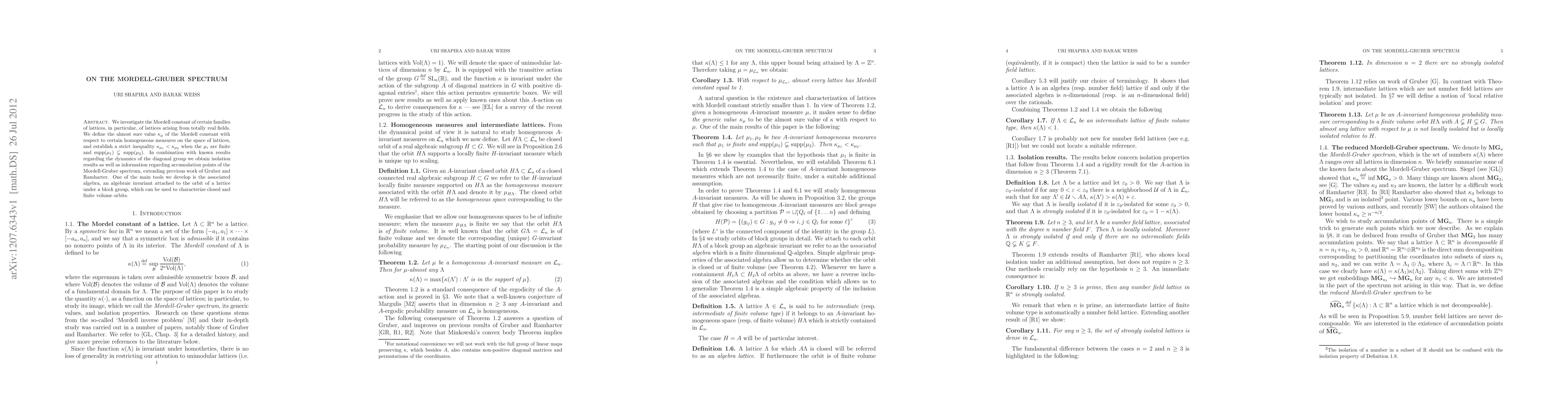Researchers investigate the Mordell constant for lattices from totally real fields, establishing a strict inequality between certain measures of the spectrum, which sheds light on accumulation points and isolation results.