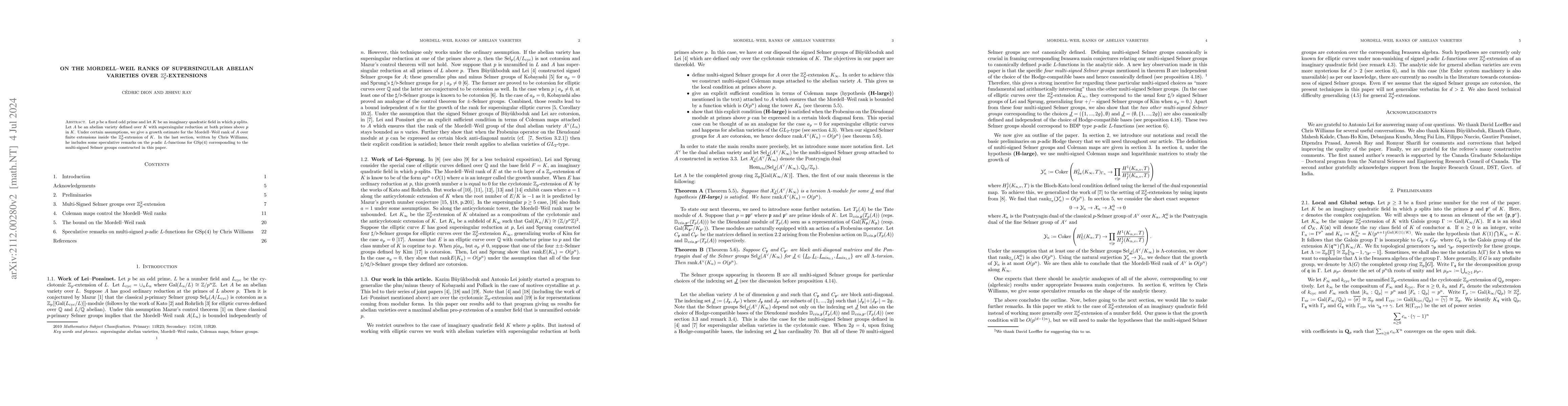 This paper studies the Mordell-Weil ranks of supersingular abelian varieties over $\mathbb{Z}_p^2$-extensions, providing a growth estimate for these ranks under specific assumptions and concluding with speculative remarks on $p$-adic $L$-functions for $\mathrm{GSp}(4)$.
