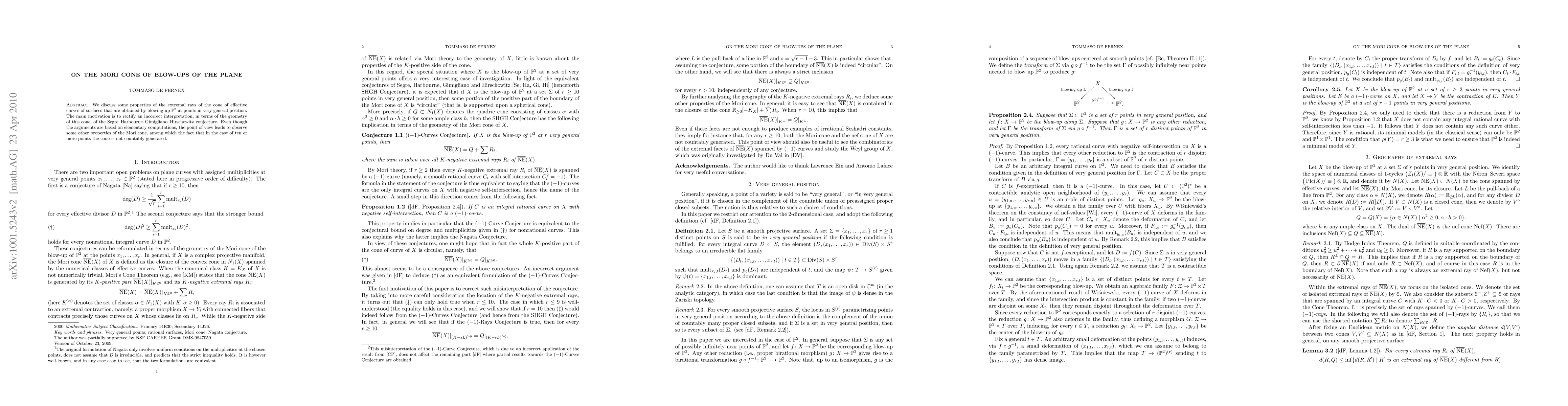 Researchers investigated the properties of the Mori cone for blow-ups of the projective plane, finding that it is not countably generated when more than 10 points are blown up.