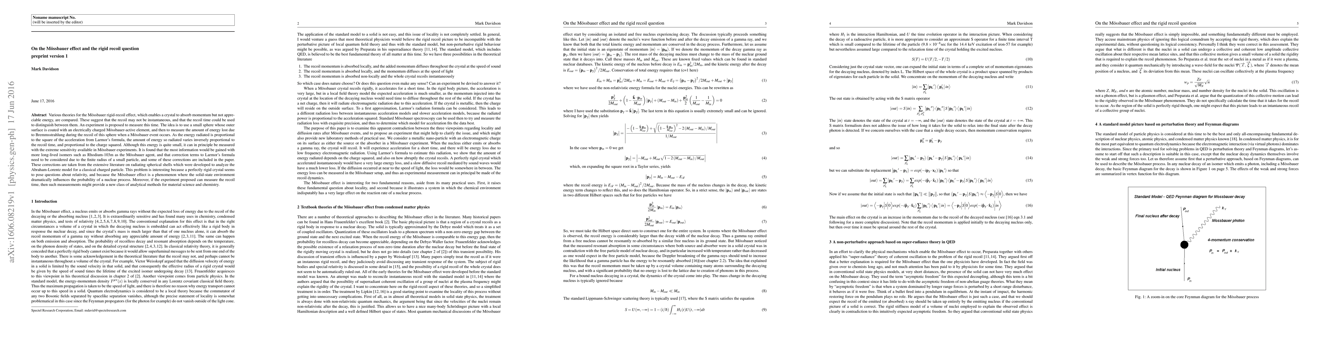 Various theories for the M\"ossbauer rigid-recoil effect, which enables a crystal to absorb momentum but not appreciable energy, are compared. These suggest that the recoil may not be instantaneous, and that the recoil time could be used to distinguish between them. An experiment is proposed to measure this time. The idea is to use a small sphere whose outer surface is coated with an electrically charged M\"ossbauer-active element, and then to measure the amount of energy lost due to Bremmsstrahlung during the recoil of this sphere when a M\"ossbauer event occurs. As the energy radiated is proportional to the square of the acceleration from Larmor's formula, the amount of energy so radiated varies inversely proportional to the recoil time, and proportional to the charge squared. Although this energy is quite small, it can in principle be measured with the extreme sensitivity available in M\"ossbauer experiments. It is found that the most information would be gained with more long-lived isomers such as Rhodium-103m as the M\"ossbauer agent, and that correction terms to Larmor's formula need to be considered due to the finite radius of a small particle, and some of these corrections are included in the paper. These corrections are taken from the extensive literature on radiating spherical shells which were developed to analyze the Abraham-Lorentz model for a classical charged particle. This problem is interesting because a perfectly rigid crystal seems to pose questions about relativity, and because the M\"ossbauer effect is a phenomenon where the solid-state environment dramatically influences the probability of a nuclear process. Moreover, if the experiment proposed can measure the recoil time, then such measurements might provide a new class of analytical methods for material science and chemistry.