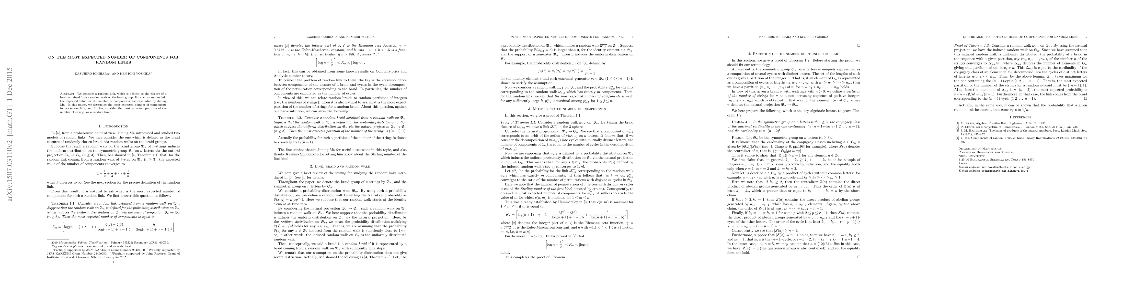 This paper calculates the most expected number of components for a random link formed by the closure of a braid from a random walk on the braid group, extending Jiming Ma's work, and also explores the most expected partition of strings for a random braid.