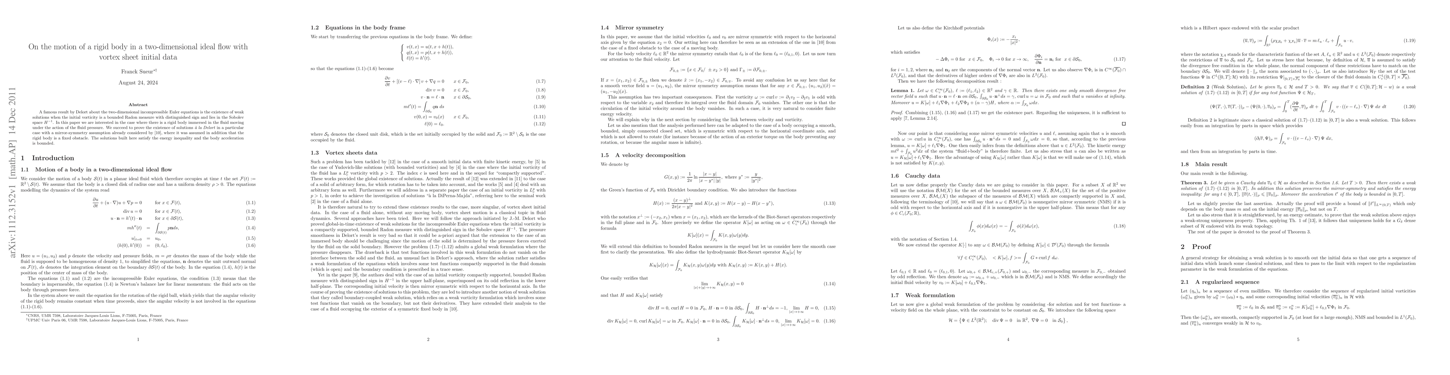 A famous result by Delort about the two-dimensional incompressible Euler equations is the existence of weak solutions when the initial vorticity is a diffuse bounded Radon measure with distinguished sign. In this paper we are interested in the case where there is a rigid body immersed in the fluid moving under the action of the fluid pressure. We succeed to prove the existence of solutions \`a la Delort in a particular case. These solutions satisfy the energy inequality and the body acceleration is bounded.