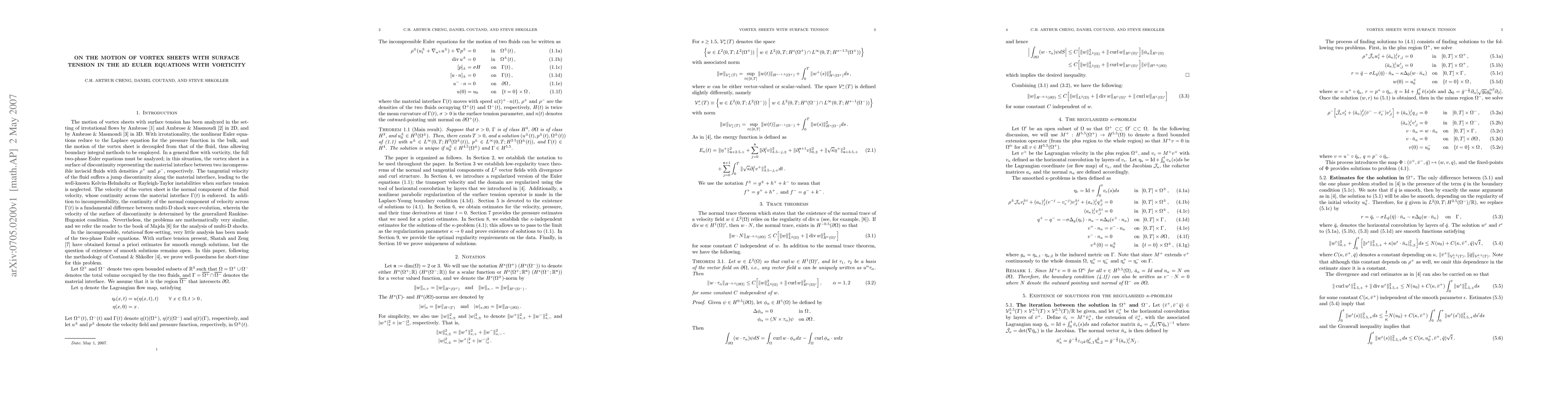 Summary: This paper establishes the well-posedness of vortex sheets incorporating surface tension in the 3D incompressible Euler equations, focusing on the dynamics of vorticity. The study rigorously proves the existence and uniqueness of solutions under specified conditions.