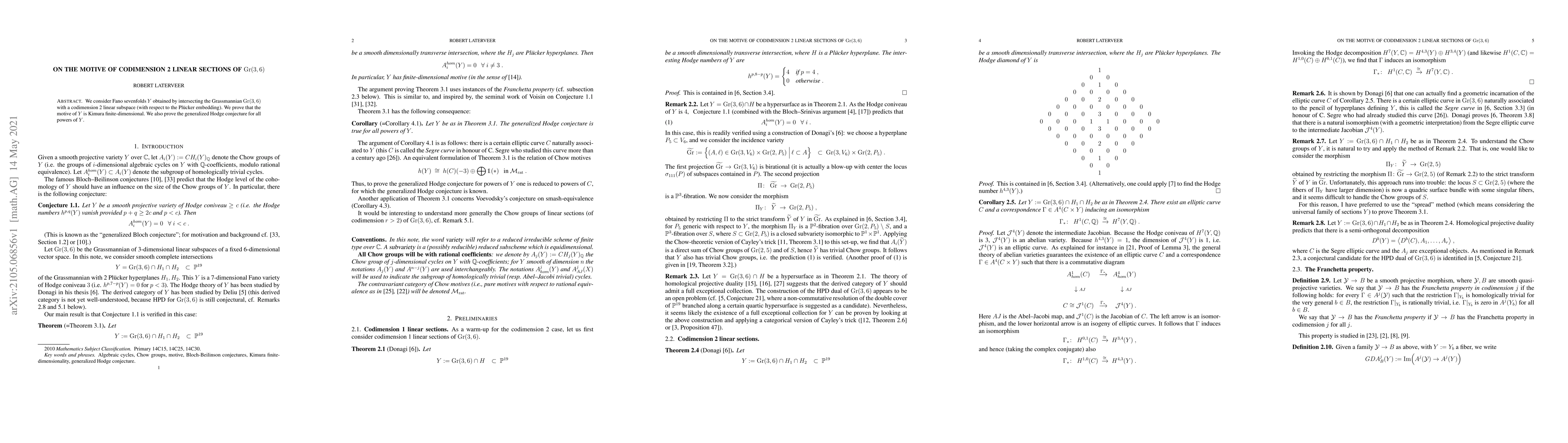 Researchers investigate Fano sevenfolds obtained from intersecting the Grassmannian with a codimension 2 linear subspace, proving their motive is Kimura finite-dimensional and resolving the generalized Hodge conjecture for all powers of these varieties.