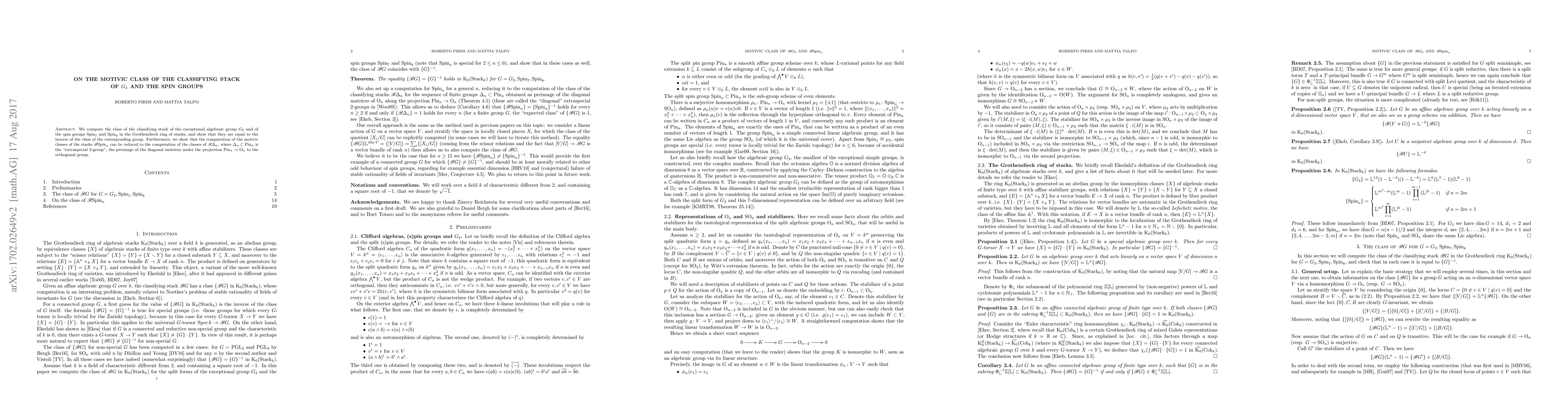Researchers computed the class of the classifying stack of $G_2$ and spin groups in terms of their inverse group class, reducing the problem to computing the class of an 'extraspecial 2-group'.