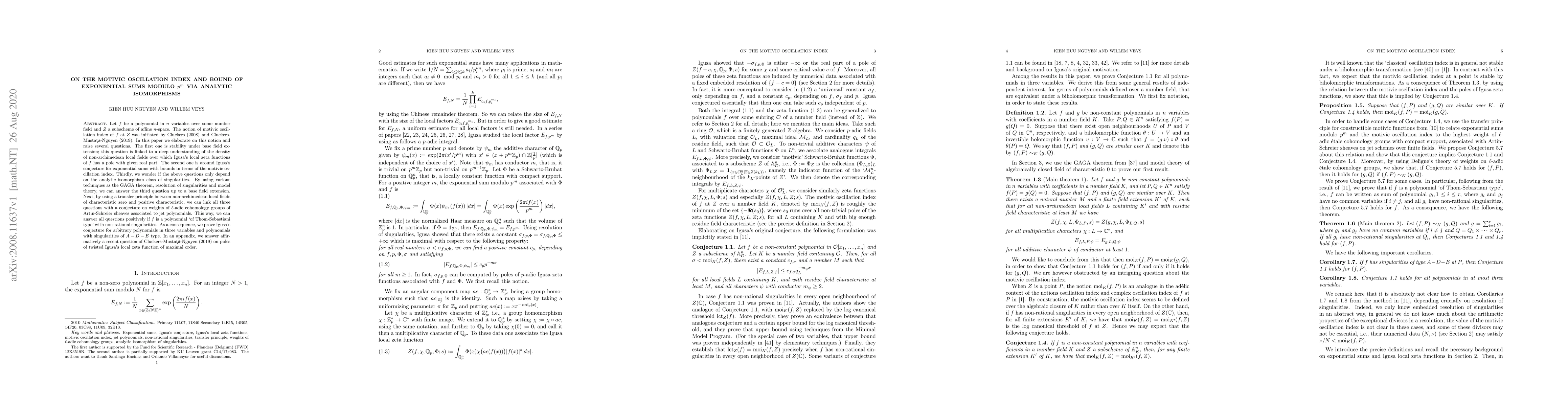 Let $f$ be a polynomial in $n$ variables over some number field and $Z$ a subscheme of affine $n$-space. The notion of motivic oscillation index of $f$ at $Z$ was initiated by Cluckers (2008) and Cluckers-Musta\c{t}\v{a}-Nguyen (2019). In this paper we elaborate on this notion and raise several questions. The first one is stability under base field extension; this question is linked to a deep understanding of the density of non-archimedean local fields over which Igusa's local zeta functions of $f$ has a pole with given real part. The second one is around Igusa's conjecture for exponential sums with bounds in terms of the motivic oscillation index. Thirdly, we wonder if the above questions only depend on the analytic isomorphism class of singularities. By using various techniques as the GAGA theorem, resolution of singularities and model theory, we can answer the third question up to a base field extension. Next, by using a transfer principle between non-archimedean local fields of characteristic zero and positive characteristic, we can link all three questions with a conjecture on weights of $\ell$-adic cohomology groups of Artin-Schreier sheaves associated to jet polynomials. This way, we can answer all questions positively if $f$ is a polynomial of Thom-Sebastiani type with non-rational singularities. As a consequence, we prove Igusa's conjecture for arbitrary polynomials in three variables and polynomials with singularities of $ADE$ type. In an appendix, we answer affirmatively a recent question of Cluckers-Musta\c{t}\v{a}-Nguyen (2019) on poles of twisted Igusa's local zeta functions of maximal order.