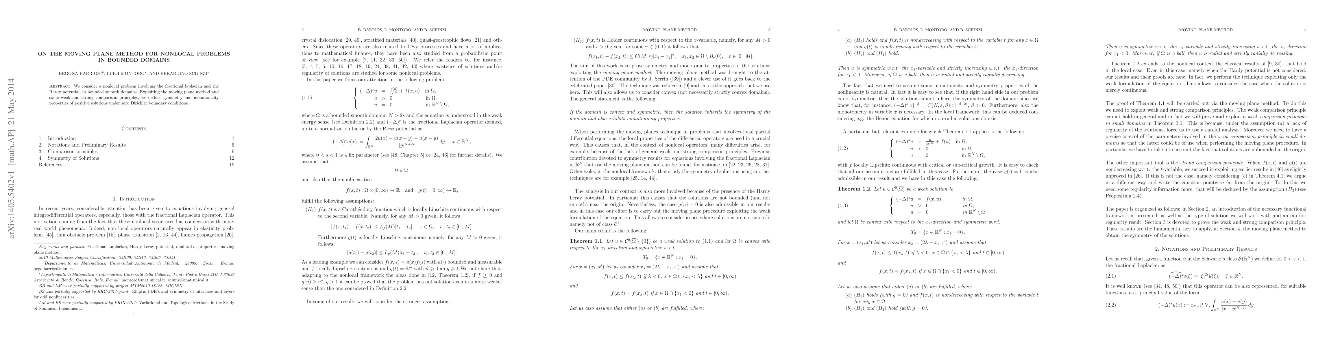 Researchers used the moving plane method to study nonlocal problems in bounded domains, finding symmetry and monotonicity properties of positive solutions under zero Dirichlet boundary conditions.