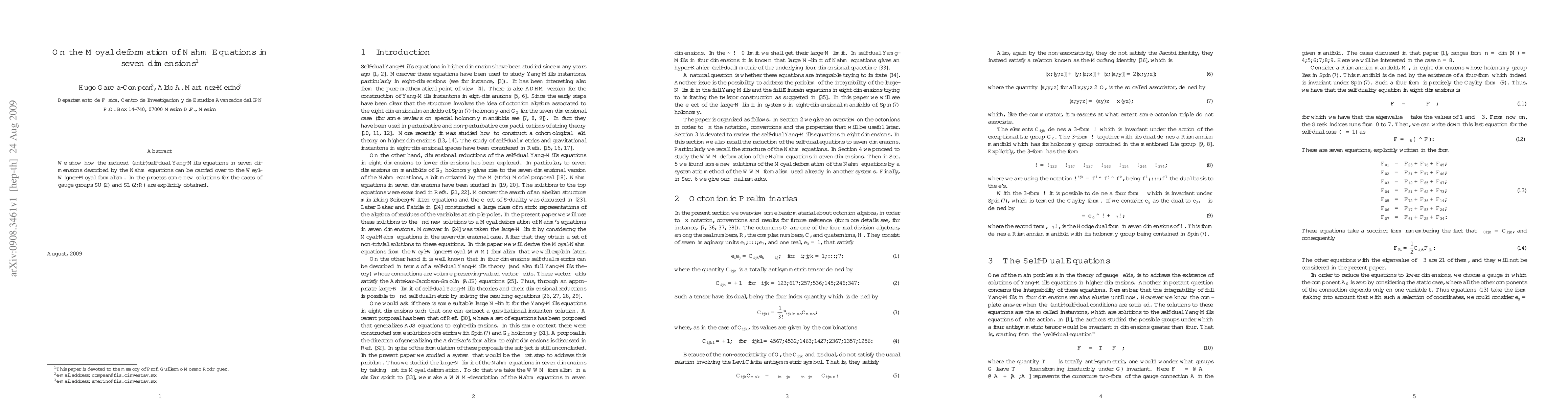 This paper demonstrates the transition of reduced (anti-)self-dual Yang-Mills equations in seven dimensions, represented by the Nahm equations, into the Weyl-Wigner-Moyal formalism, revealing new solutions for gauge groups SU(2) and SL(2,R).
