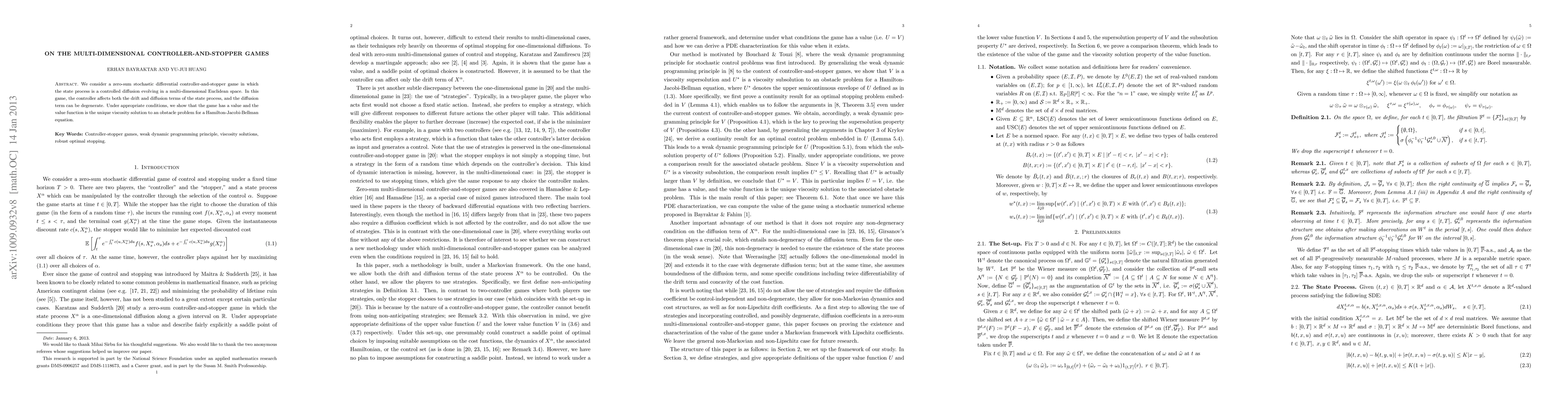 This paper studies a zero-sum stochastic differential controller-and-stopper game in multi-dimensional space, where the controller influences both drift and volatility. It proves the existence of a game value and identifies the value function as the unique solution to a Hamilton-Jacobi-Bellman equation obstacle problem.