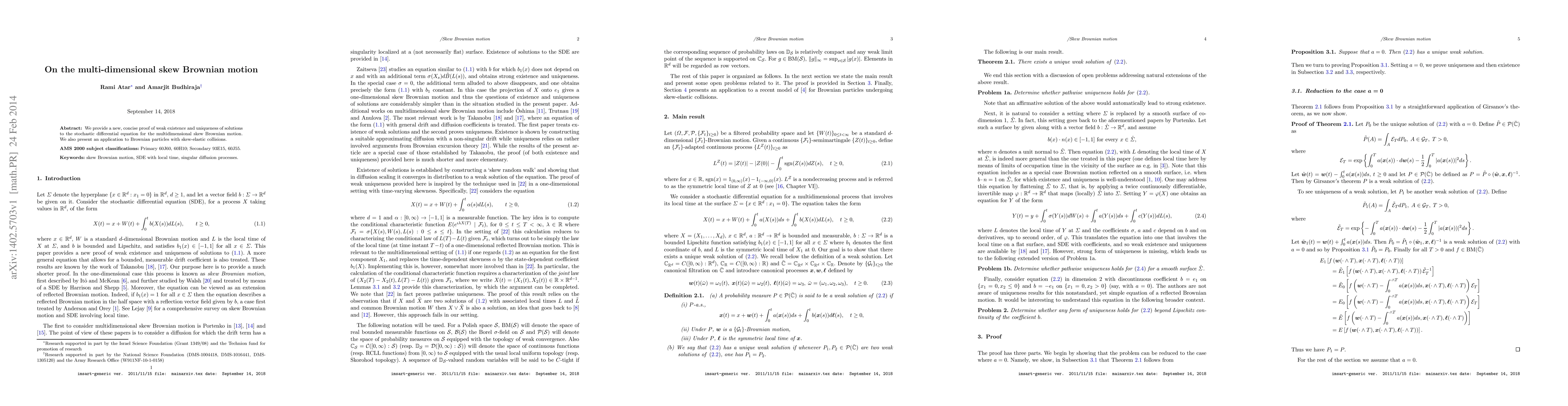 Summary: This paper offers a succinct proof for the weak existence and uniqueness of solutions to the stochastic differential equation governing multidimensional skew Brownian motion, and applies this to model Brownian particles experiencing skew-elastic collisions.