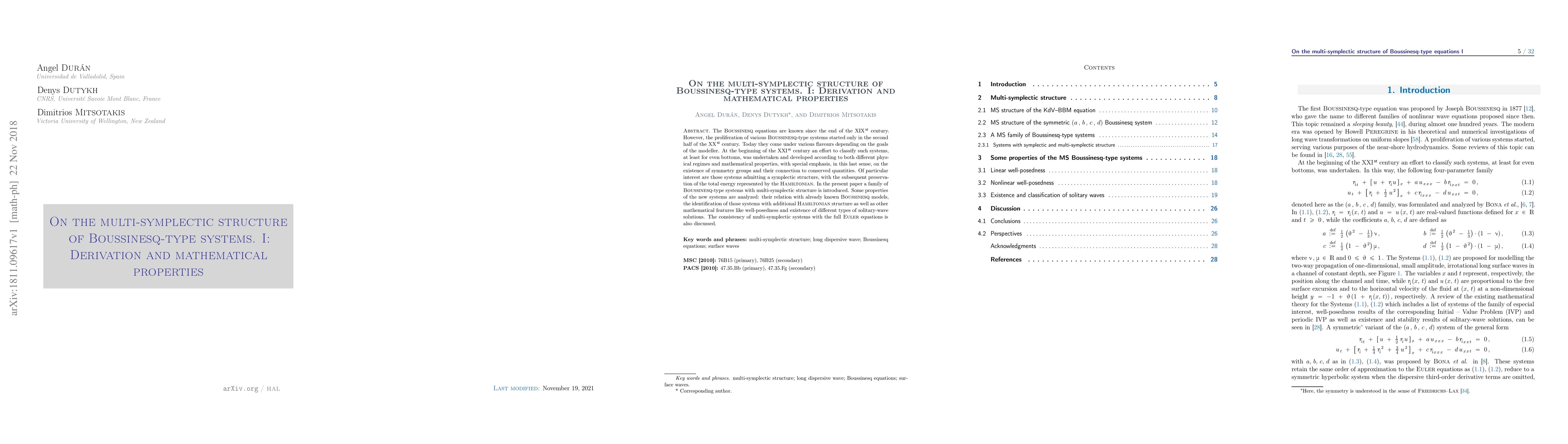Researchers introduce a family of Boussinesq-type systems with multi-symplectic structure, exploring their properties and implications for preserving total energy and existence of solitary-wave solutions.