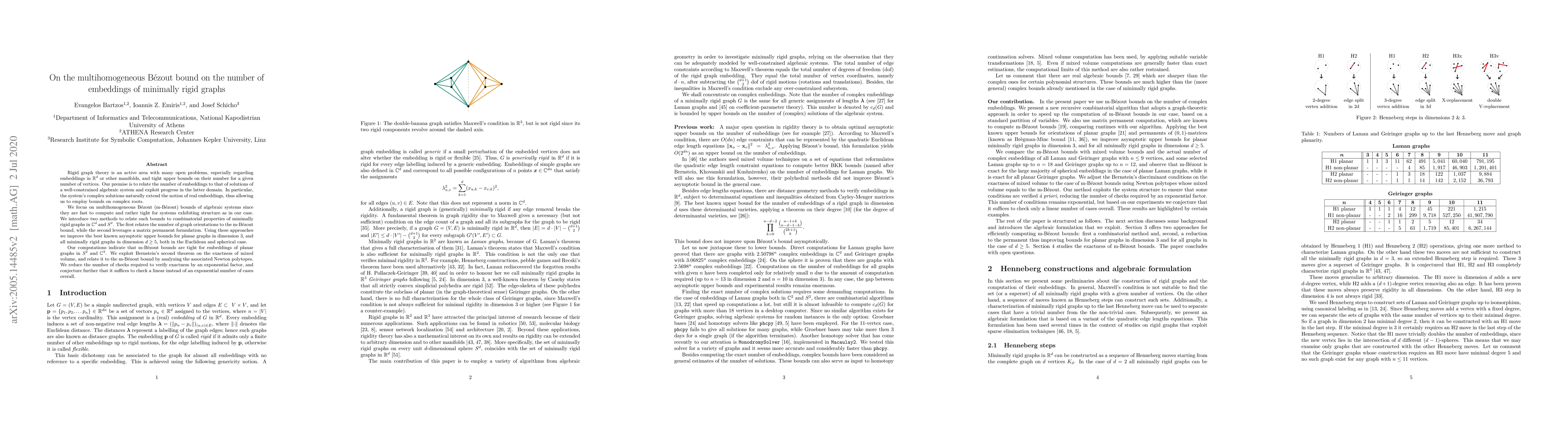 This research paper improves asymptotic upper bounds for the number of embeddings of minimally rigid graphs in 3D space and higher dimensions, using multihomogeneous Bézout bounds and a matrix permanent formulation.