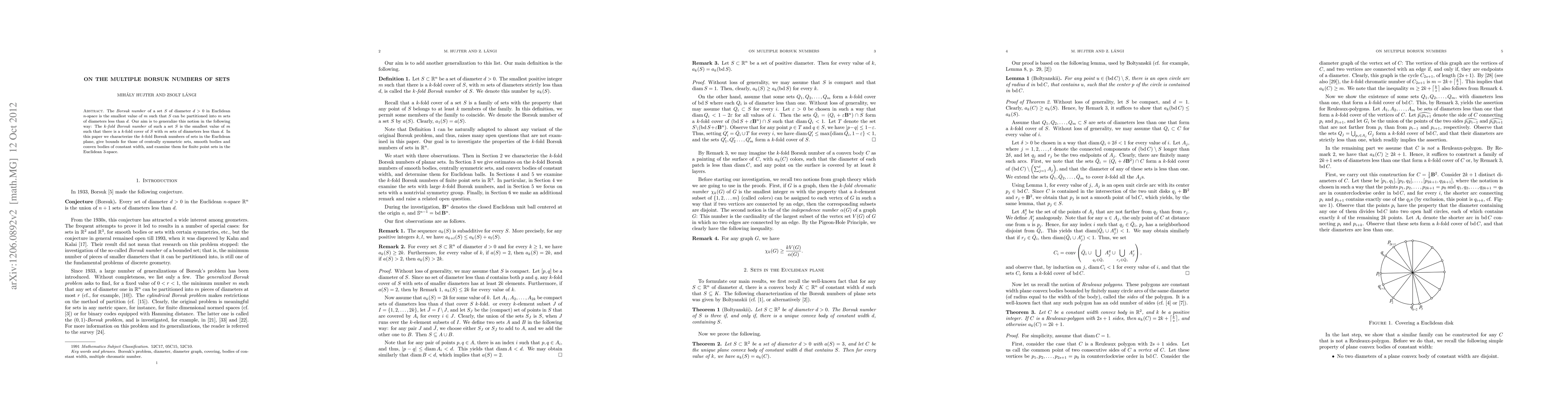 This paper explores the concept of k-fold Borsuk numbers, which generalize the traditional Borsuk number by partitioning a set into multiple covers with smaller diameters. It characterizes these numbers for sets in the Euclidean plane and provides bounds for centrally symmetric sets, smooth bodies, and convex bodies of constant width, along with an examination of finite point sets in 3-dimensional space.