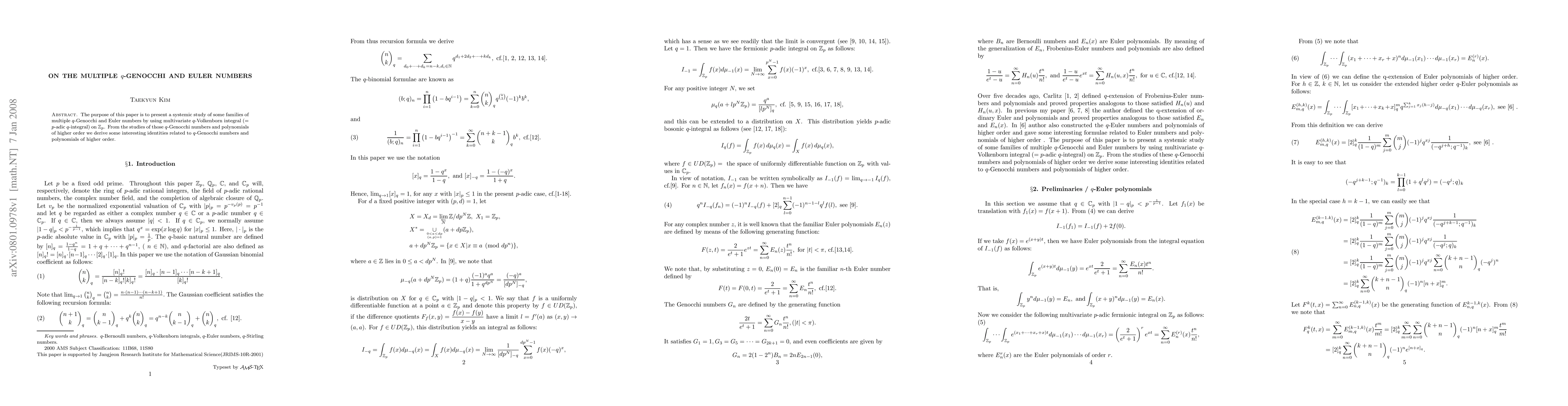 This paper investigates multiple q-Genocchi and Euler numbers using the multivariate q-Volkenborn integral, deriving novel identities related to these higher-order q-Genocchi numbers and polynomials.
