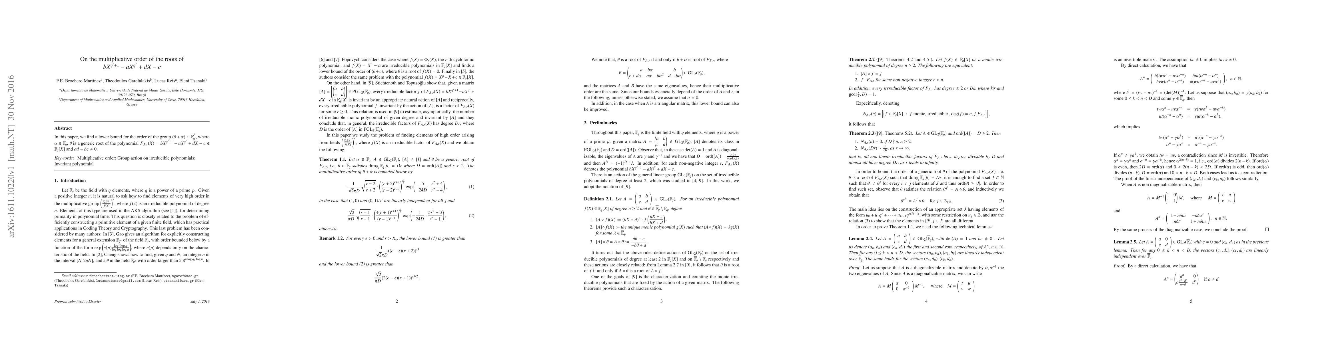 In this paper, we find a lower bound for the order of the group $\langle \theta+\alpha\rangle \subset \overline{\mathbb F_{q}}^*$, where $\alpha\in \mathbb F_{q}$, $\theta$ is a generic root of the polynomial $F_{A,r}(X)=bX^{q^r+1}-aX^{q^r}+dX-c\in \mathbb F_{q}[X]$ and $ad-bc\ne0$.
