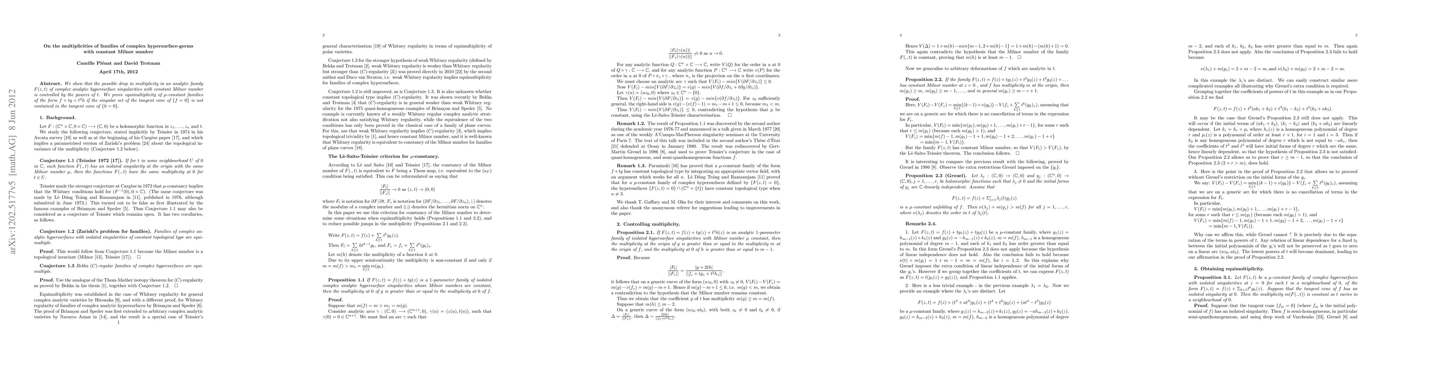 We show that the possible drop in multiplicity in an analytic family $F(z,t)$ of complex analytic hypersurface singularities with constant Milnor number is controlled by the powers of $t$. We prove equimultiplicity of $\mu$-constant families of the form $f + tg + t^2h$ if the singular set of the tangent cone of $\{f = 0}$ is not contained in the tangent cone of $\{h = 0}$.