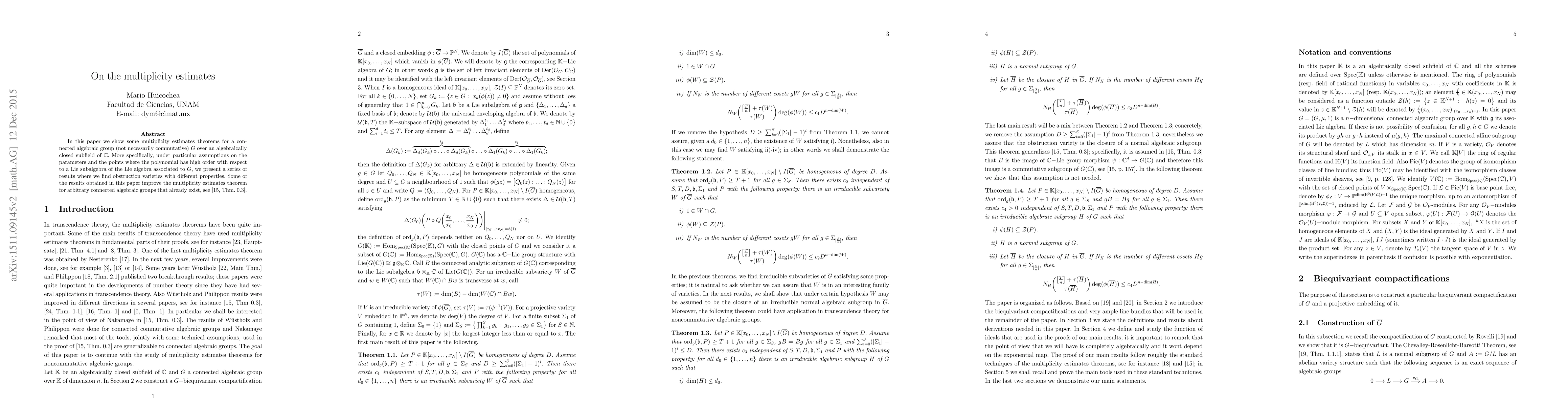 This paper establishes multiplicity estimates theorems for connected algebraic groups over an algebraically closed subfield of χ, improving existing results and providing tools for transcendence theory in noncommutative groups.