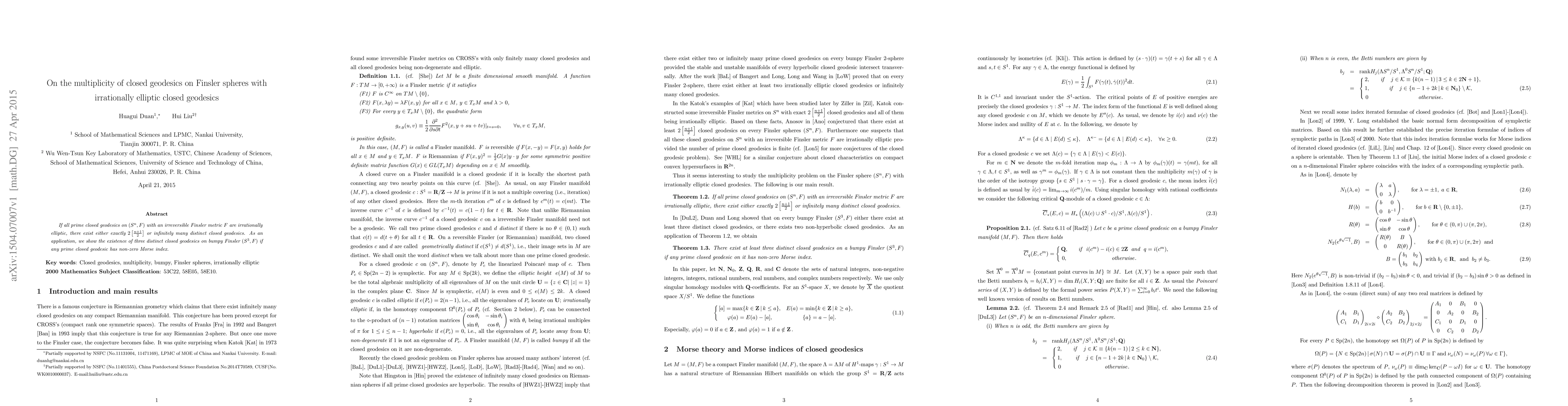 Summary: The paper proves that on Finsler spheres with all prime closed geodesics being irrationally elliptic, there are either $2\left[\frac{n+1}{2}\right]$ or infinitely many distinct closed geodesics. Specifically, it demonstrates the existence of three distinct closed geodesics on bumpy Finsler $S^3$ under the condition that any prime closed geodesic has a non-zero Morse index.