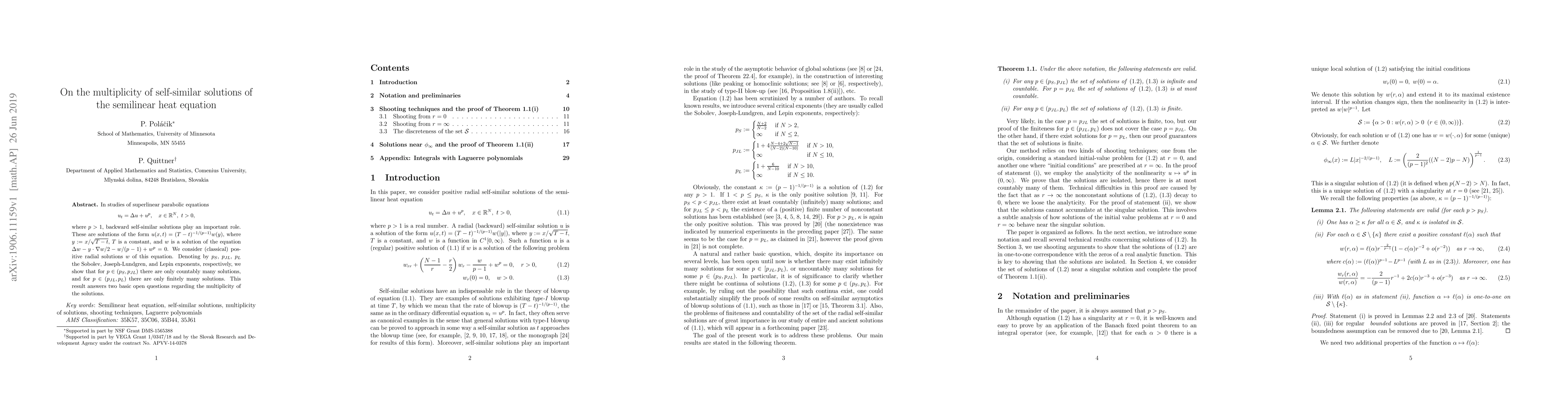 This research identifies the multiplicity of self-similar solutions for semilinear heat equations, showing only countably many for p in (p_S, p_JL), and finitely many for p in (p_JL, p_L), addressing key open questions in the field.