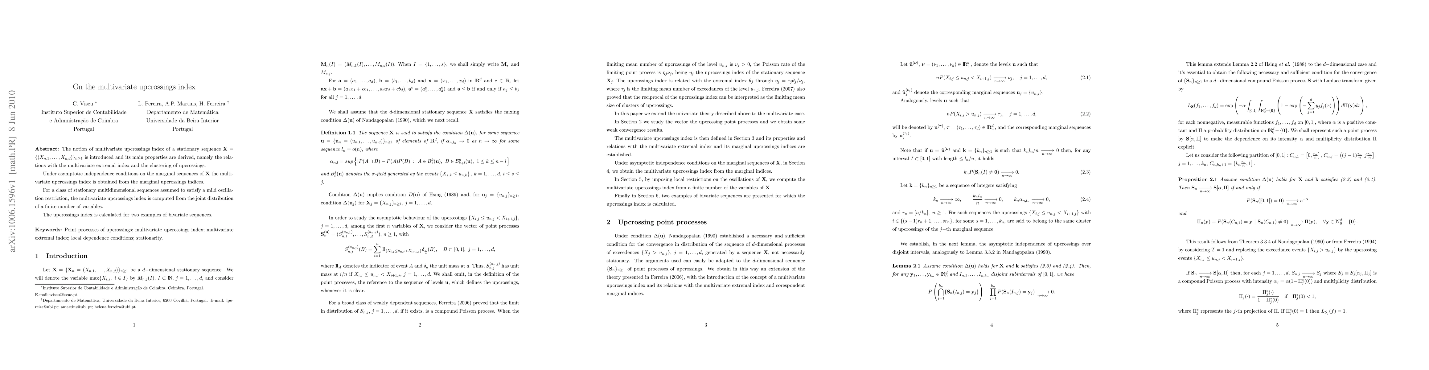 The work extends existing univariate upcrossings index concepts to the multivariate case, introducing a new index that captures clustering behavior of extremes across multiple dimensions, which is a significant advancement in extreme value theory for dependent sequences.