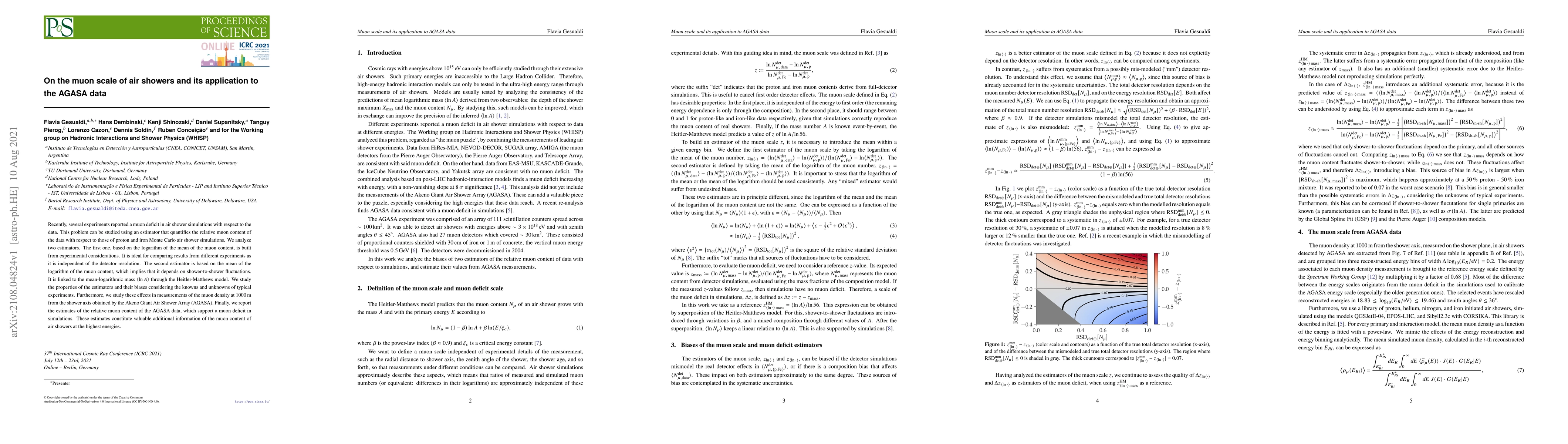 This paper investigates two estimators to quantify the relative muon content in air showers, comparing them against AGASA data. The findings support a muon deficit in simulations, providing crucial insights into the muon scale of air showers at ultra-high energies.