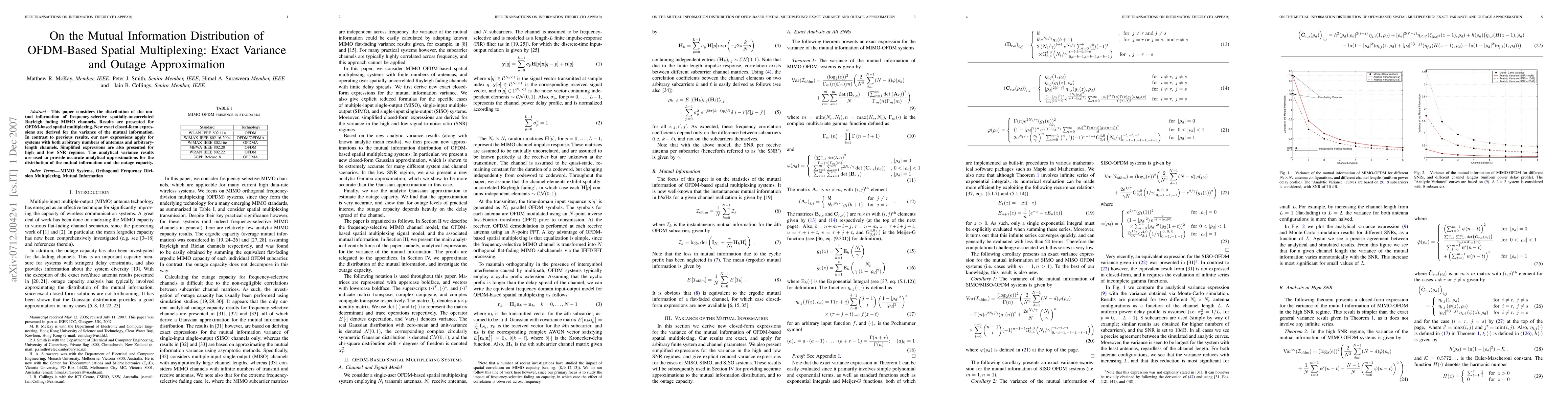This paper considers the distribution of the mutual information of frequency-selective spatially-uncorrelated Rayleigh fading MIMO channels. Results are presented for OFDM-based spatial multiplexing. New exact closed-form expressions are derived for the variance of the mutual information. In contrast to previous results, our new expressions apply for systems with both arbitrary numbers of antennas and arbitrary-length channels. Simplified expressions are also presented for high and low SNR regimes. The analytical variance results are used to provide accurate analytical approximations for the distribution of the mutual information and the outage capacity.