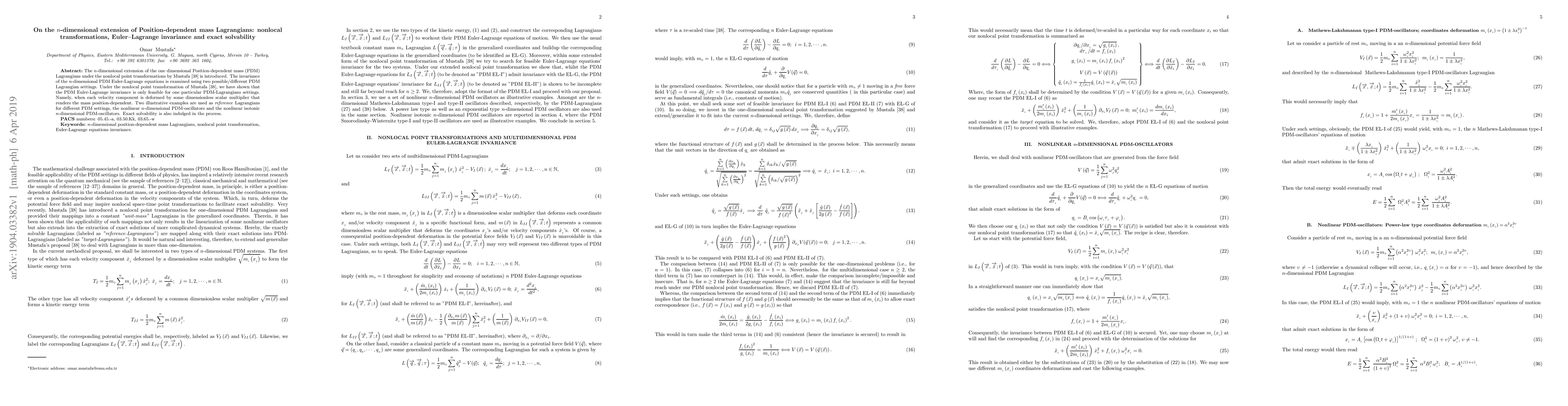 The n-dimensional extension of the one dimensional Position-dependent mass (PDM) Lagrangians under the nonlocal point transformations by Mustafa 38 is introduced. The invariance of the n-dimensional PDM Euler-Lagrange equations is examined using two possible/different PDM Lagrangian settings. Under the nonlocal point transformation of Mustafa 38, we have shown that the PDM Euler-Lagrange invariance is only feasible for one particular PDM-Lagrangians settings. Namely, when each velocity component is deformed by some dimensionless scalar multiplier that renders the mass position-dependent. Two illustrative examples are used as reference Lagrangians for different PDM settings, the nonlinear n-dimensional PDM-oscillators and the nonlinear isotonic n-dimensional PDM-oscillators. Exact solvability is also indulged in the process.