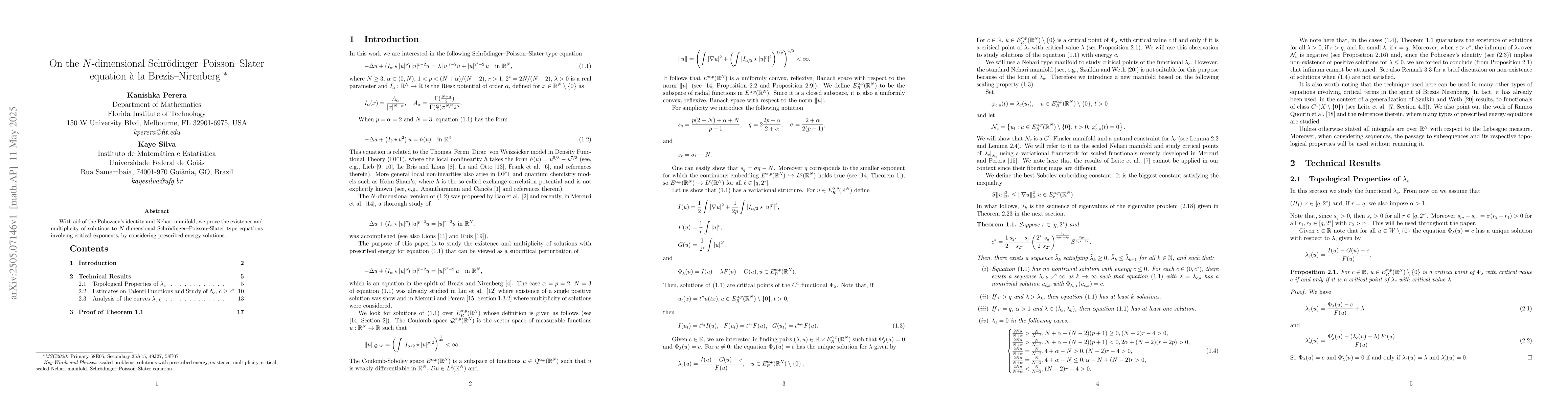 The application of Pohozaev's identity and Nehari manifold to prove existence and multiplicity results for Schrödinger--Poisson--Slater equations in N-dimensions.