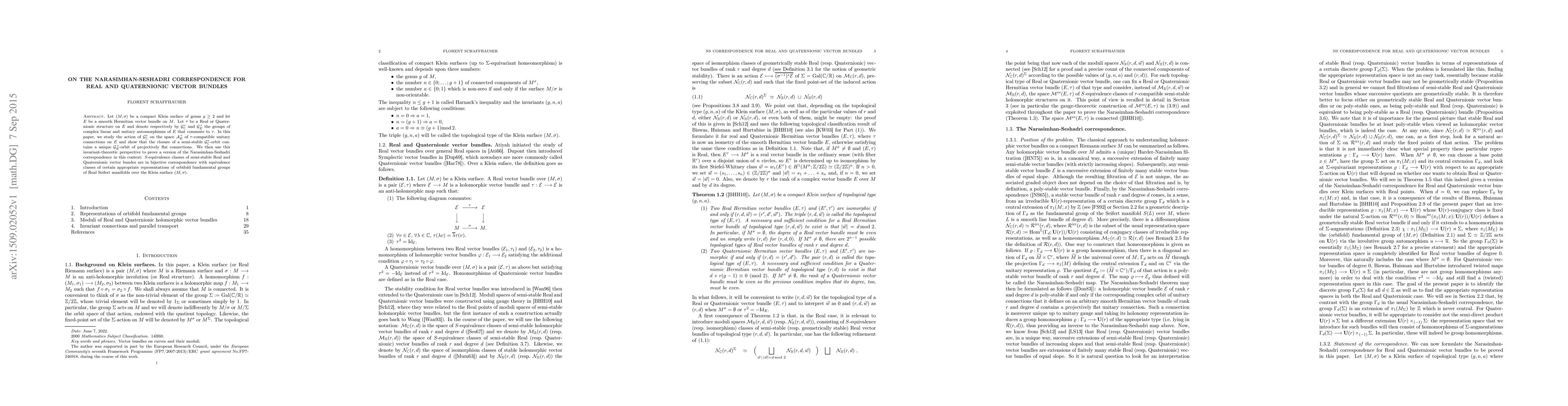 This research paper establishes a correspondence between semi-stable real and quaternionic vector bundles and representations of orbifold fundamental groups on Klein surfaces, providing a novel perspective on Narasimhan-Seshadri correspondence.