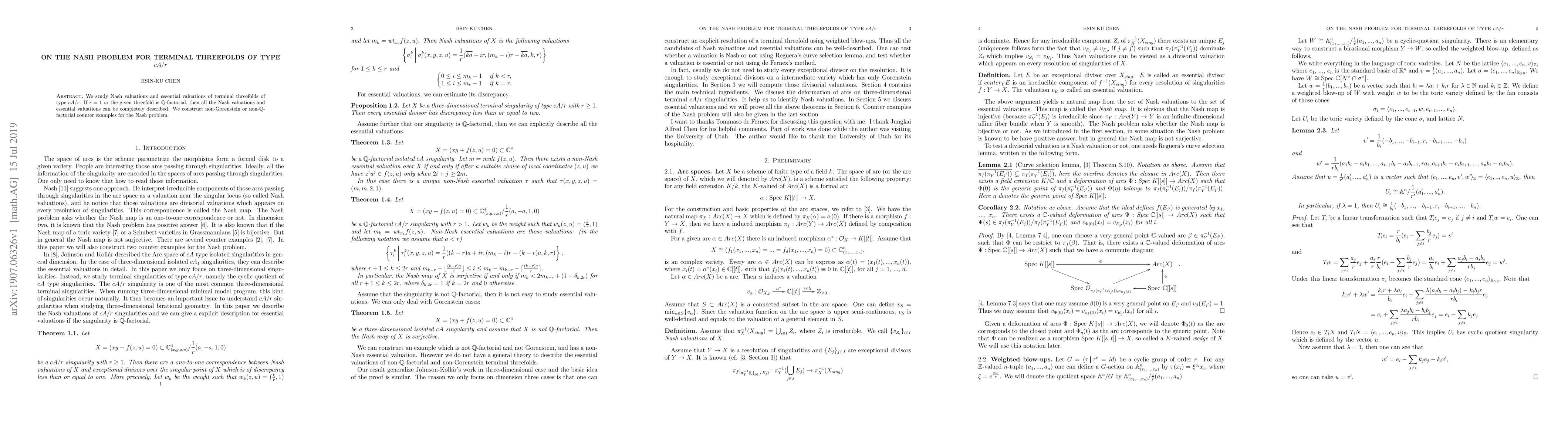 This paper investigates Nash valuations and essential valuations for terminal threefolds of type $cA/r$, showing complete descriptions when $r=1$ or the threefold is $\mathbb Q$-factorial. It also constructs counterexamples for non-Gorenstein or non-$\mathbb Q$-factorial cases to address the Nash problem.