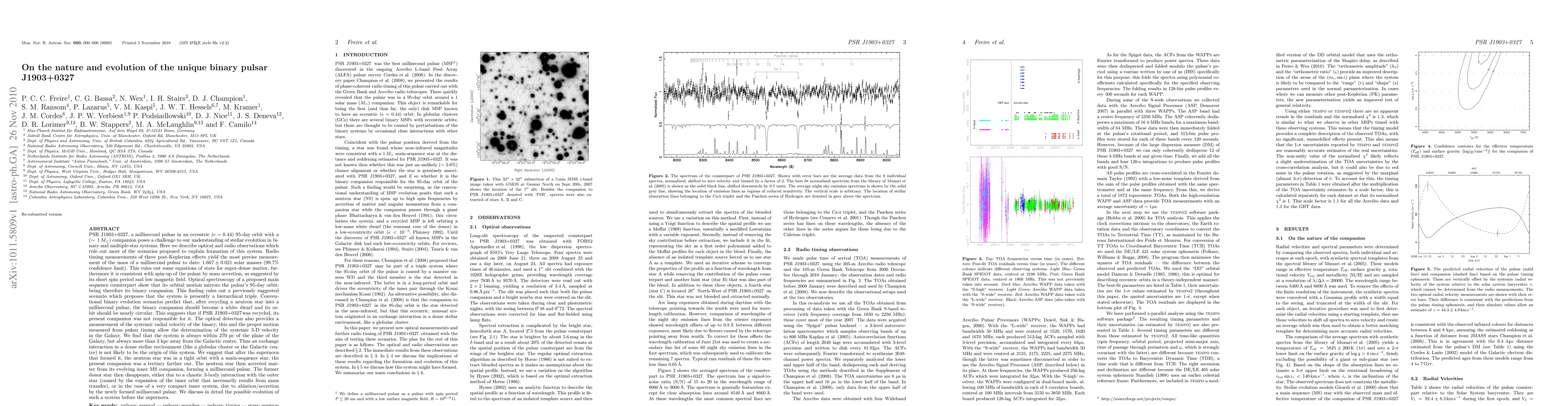 This paper investigates the unique binary pulsar PSR J1903+0327, revealing precise mass measurements and ruling out most formation scenarios. The system's 3-D velocity suggests it formed in a dense stellar environment, but observations indicate it likely evolved through a complex interaction involving a tertiary star.