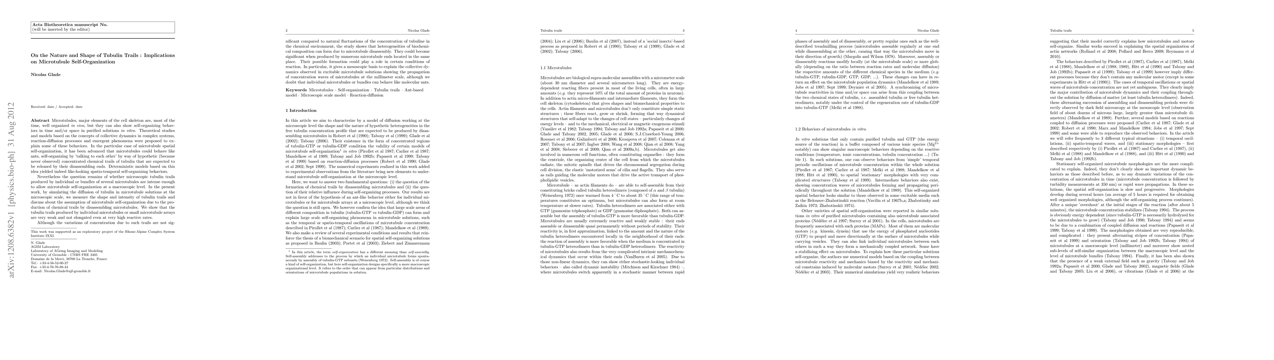 Microtubules, major elements of the cell skeleton are, most of the time, well organized in vivo, but they can also show self-organizing behaviors in time and/or space in purified solutions in vitro. Theoretical studies and models based on the concepts of collective dynamics in complex systems, reaction-diffusion processes and emergent phenomena were proposed to explain some of these behaviors. In the particular case of microtubule spatial self-organization, it has been advanced that microtubules could behave like ants, self-organizing by 'talking to each other' by way of hypothetic (because never observed) concentrated chemical trails of tubulin that are expected to be released by their disassembling ends. Deterministic models based on this idea yielded indeed like-looking spatio-temporal self-organizing behaviors. Nevertheless the question remains of whether microscopic tubulin trails produced by individual or bundles of several microtubules are intense enough to allow microtubule self-organization at a macroscopic level. In the present work, by simulating the diffusion of tubulin in microtubule solutions at the microscopic scale, we measure the shape and intensity of tubulin trails and discuss about the assumption of microtubule self-organization due to the production of chemical trails by disassembling microtubules. We show that the tubulin trails produced by individual microtubules or small microtubule arrays are very weak and not elongated even at very high reactive rates. Although the variations of concentration due to such trails are not significant compared to natural fluctuations of the concentration of tubuline in the chemical environment, the study shows that heterogeneities of biochemical composition can form due to microtubule disassembly. They could become significant when produced by numerous microtubule ends located in the same place. Their possible formation could play a role in certain conditions of reaction. In particular, it gives a mesoscopic basis to explain the collective dynamics observed in excitable microtubule solutions showing the propagation of concentration waves of microtubules at the millimeter scale, although we doubt that individual microtubules or bundles can behave like molecular ants.