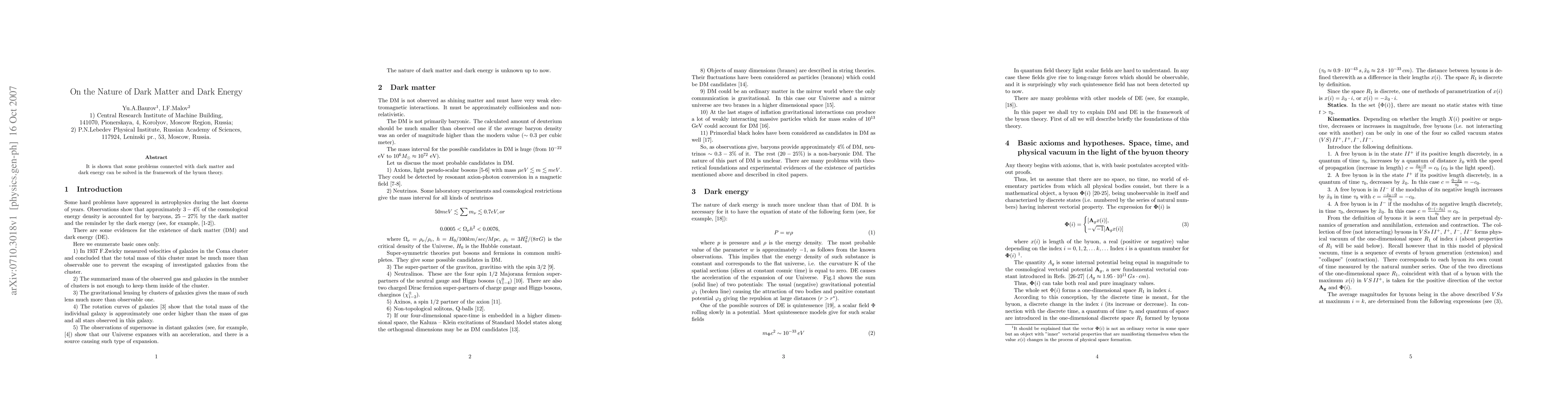 It is shown that some problems connected with dark matter and dark energy can be solved in the framework of the byuon theory