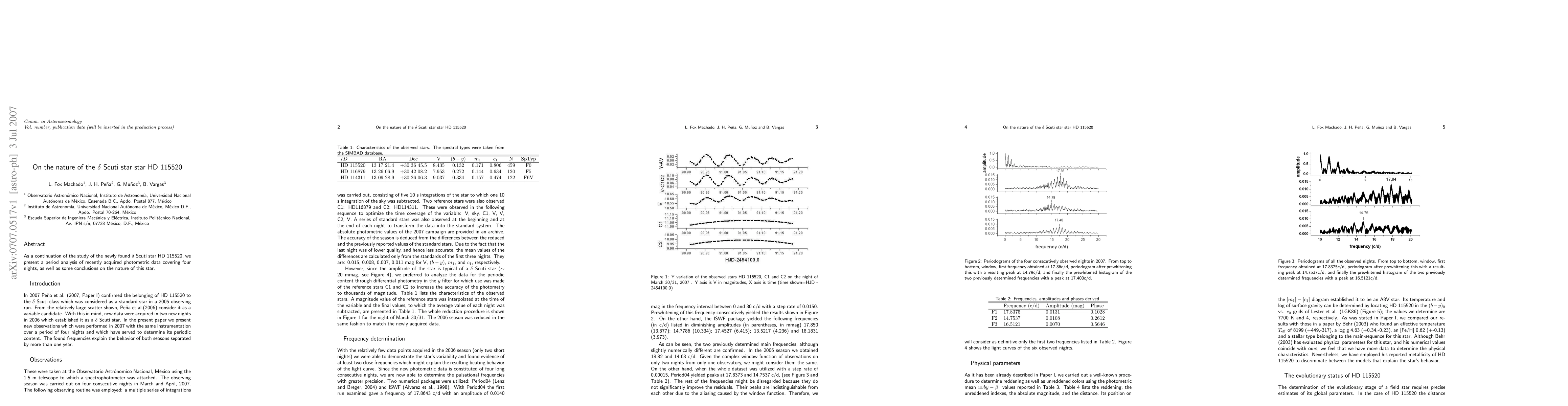 As a continuation of the study of the newly found Delta Scuti star HD 115520, we present a period analysis of recently acquired photometric data covering four nights, as well as some conclusions on the nature of this star.