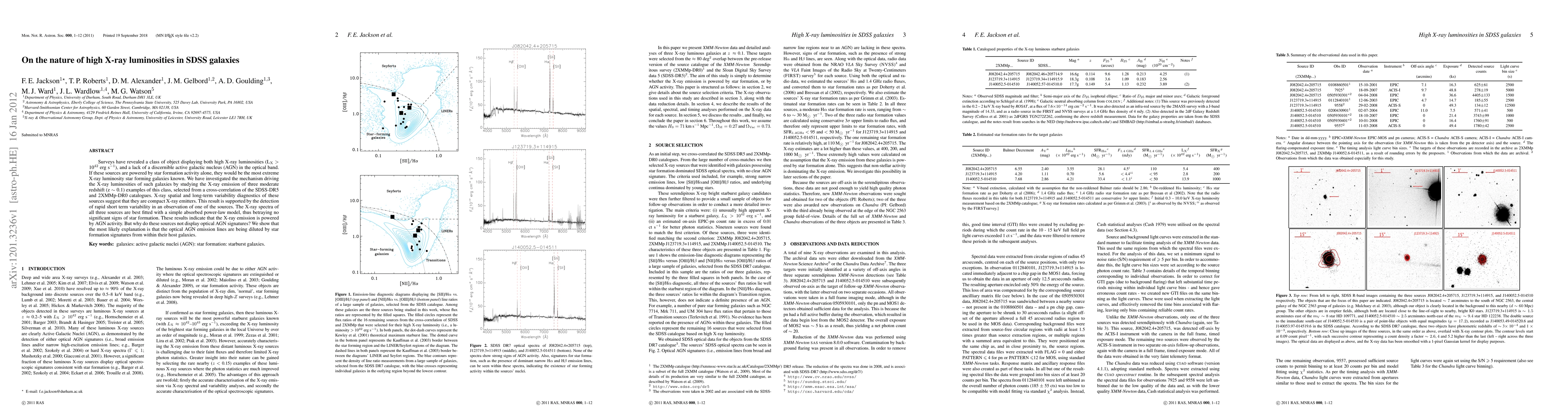 Surveys have revealed a class of object displaying both high X-ray luminosities (Lx > 10^42 erg/s), and a lack of a discernible active galactic nucleus (AGN) in the optical band. If these sources are powered by star formation activity alone, they would be the most extreme X-ray luminosity star forming galaxies known. We have investigated the mechanism driving the X-ray luminosities of such galaxies by studying the X-ray emission of three moderate redshift (z ~ 0.1) examples of this class, selected from a cross-correlation of the SDSS-DR5 and 2XMMp-DR0 catalogues. X-ray spatial and long-term variability diagnostics of these sources suggest that they are compact X-ray emitters. This result is supported by the detection of rapid short term variability in an observation of one of the sources. The X-ray spectra of all three sources are best fitted with a simple absorbed power-law model, thus betraying no significant signs of star formation. These results indicate that the X-ray emission is powered by AGN activity. But why do these sources not display optical AGN signatures? We show that the most likely explanation is that the optical AGN emission lines are being diluted by star formation signatures from within their host galaxies.