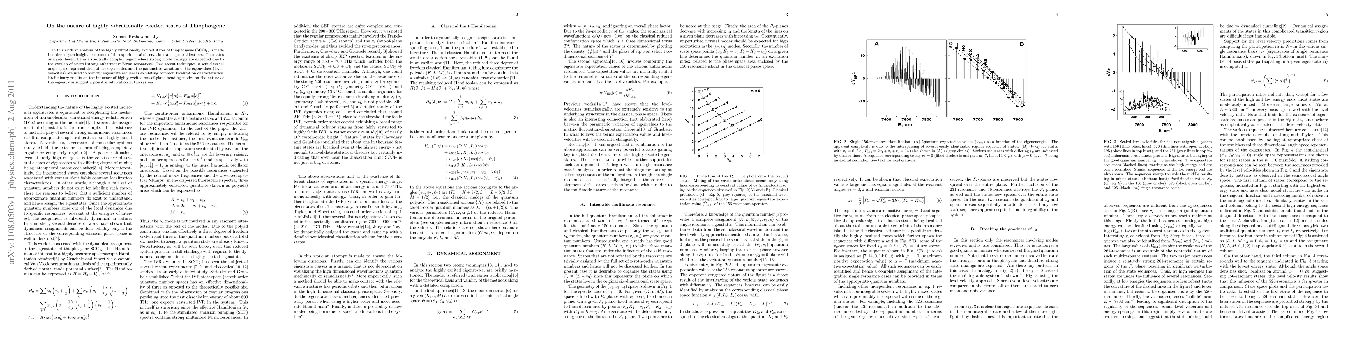 Researchers studied highly vibrationally excited states of thiophosgene to understand experimental observations and spectral features, finding a possible bifurcation in the system due to out-of-plane bending modes.