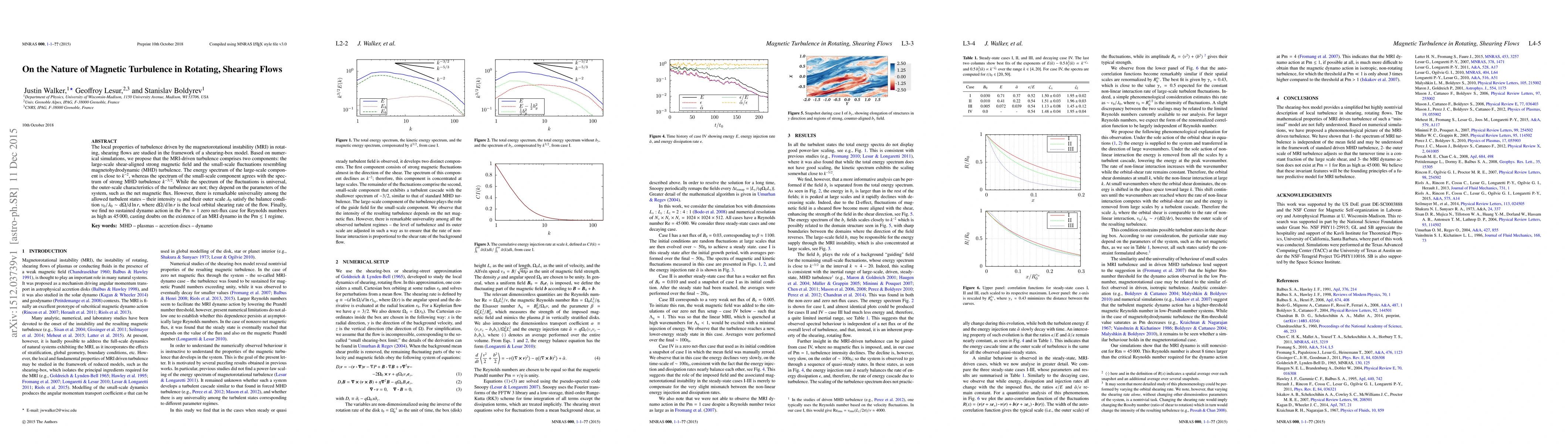 This paper investigates the nature of turbulence driven by magnetorotational instability (MRI) in rotating, shearing flows, revealing two components: large-scale shear-aligned magnetic fields and small-scale MHD turbulence. The study finds universal energy spectra but varying outer-scale characteristics dependent on system parameters.