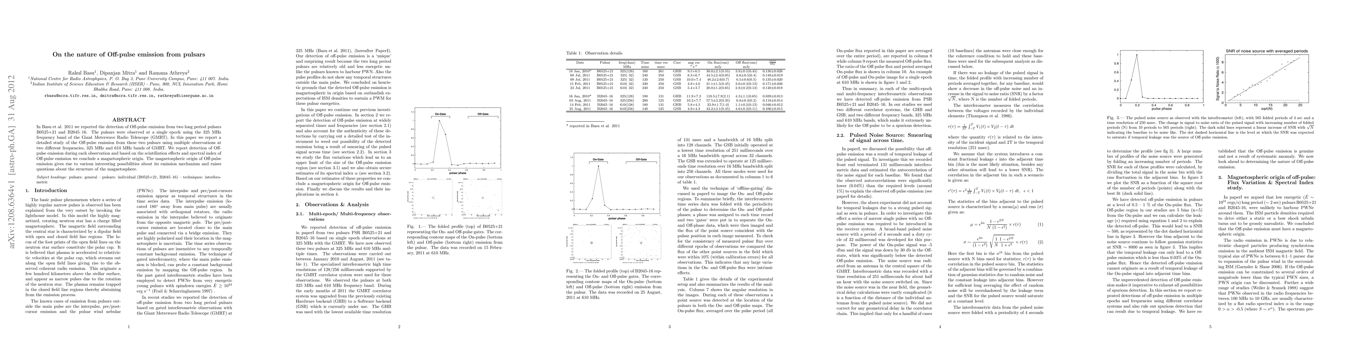 This paper reports a detailed study of Off-pulse emission from two long-period pulsars, B0525+21 and B2045-16, observed at 325 MHz and 610 MHz using the GMRT. The detection of Off-pulse emission across multiple frequencies and observations suggests a magnetospheric origin, raising questions about the pulsar magnetosphere's structure and emission mechanisms.