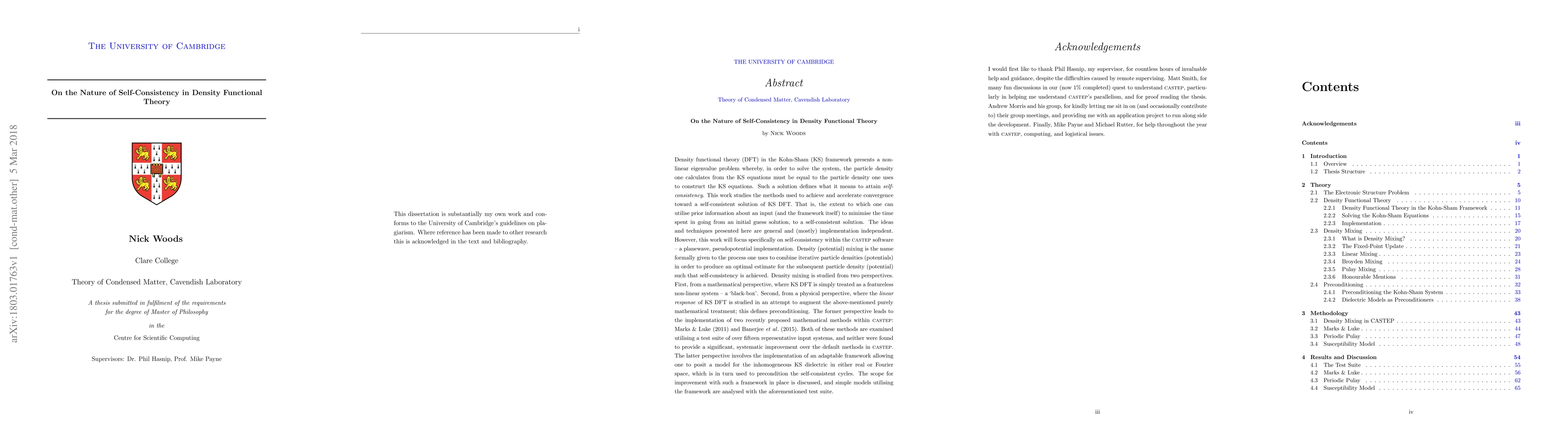 A thesis providing a pedagogical introduction to the problem of achieving self-consistency in density functional theory. Contained is an introduction to the framework of Kohn-Sham density functional theory, leading then to the considerations required to solve the equations of Kohn-Sham density functional theory. Specifically, a focus is placed on where current self-consistent field methodology is inefficient and/or fails to converge to a solution. As such, this review spans sub-disciplines such as numerical analysis of linear and non-linear systems, linear response theory, and general electronic structure theory. Toward the end of the thesis, certain contemporary methods for achieving self-consistency from literature are outlined, and a novel, computationally efficient preconditioning strategy is proposed. This work is implemented in the CASTEP software.