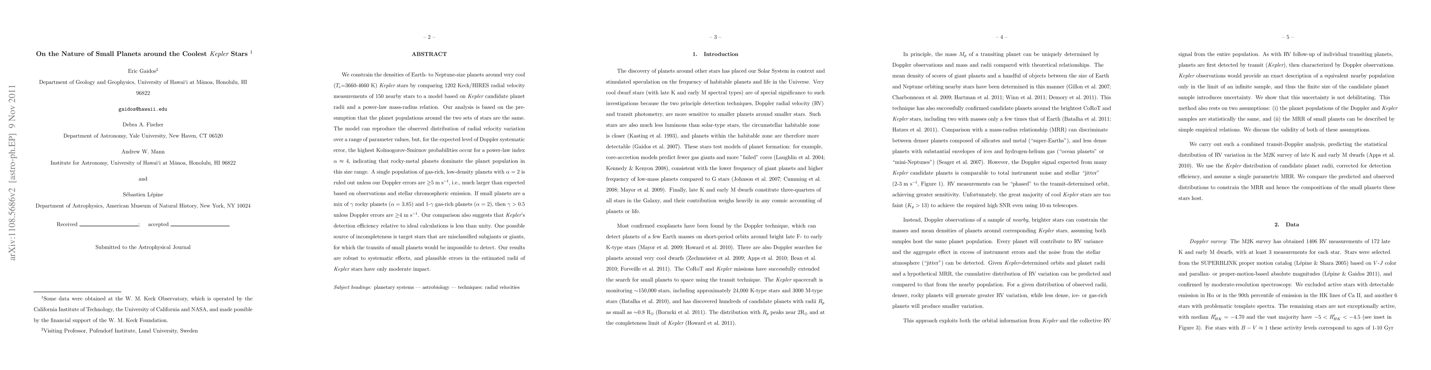 This study uses radial velocity data to determine the densities of small planets around cool Kepler stars, finding that rocky-metal planets dominate in the size range of Earth to Neptune. The analysis rules out a single population of gas-rich planets unless Doppler errors are significantly larger than expected, suggesting that planet detection efficiency may be incomplete due to misclassified stars.