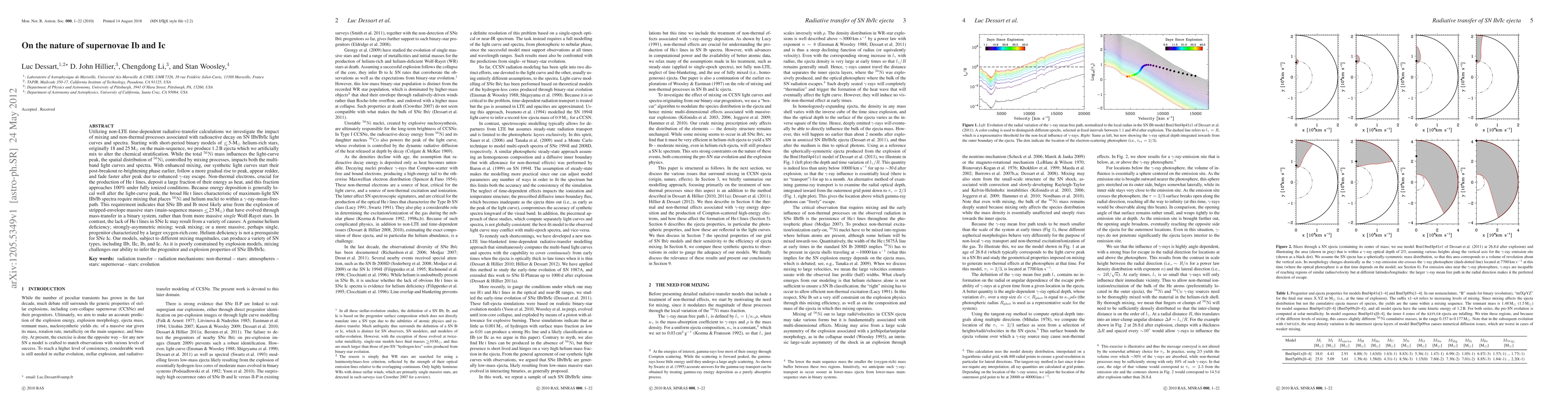 This paper investigates the influence of mixing and non-thermal processes on the light curves and spectra of supernovae types IIb, Ib, and Ic using non-LTE radiative-transfer calculations. The study suggests that mixing affects the timing of re-brightening and spectral features, indicating that SNe IIb and Ib likely originate from stripped-envelope stars in binary systems, while SNe Ic may lack HeI lines due to various factors including helium deficiency or asymmetric mixing.