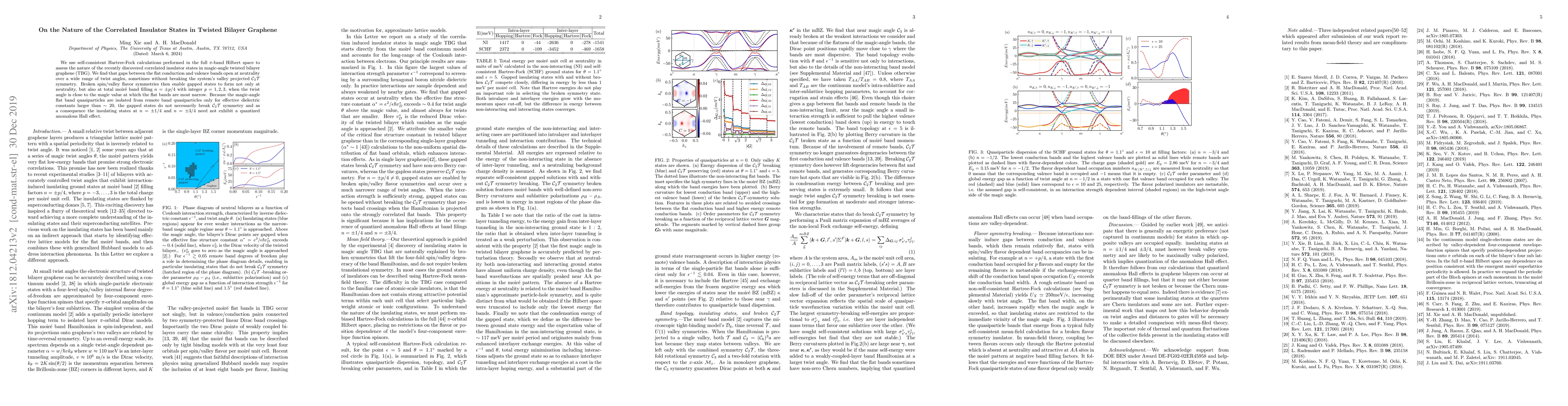 Researchers used Hartree-Fock calculations to study correlated insulator states in magic-angle twisted bilayer graphene, finding gaps open at neutrality and other fillings without breaking valley symmetry, with implications for the quantized anomalous Hall effect.