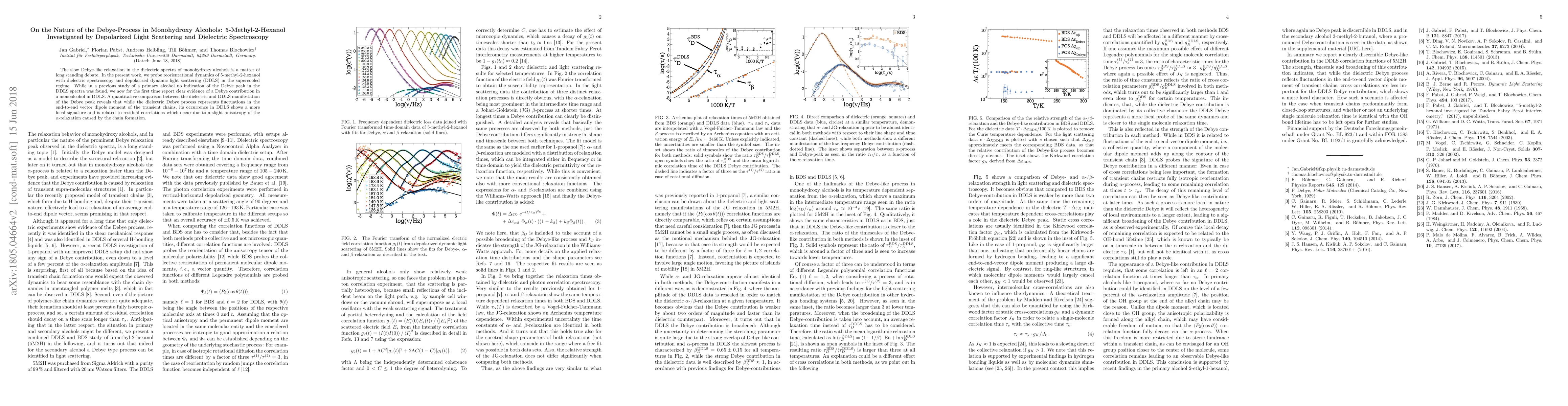 Researchers investigate the Debye process in 5-methyl-2-hexanol using dielectric spectroscopy and depolarized light scattering, finding evidence of a Debye contribution for the first time in a monoalcohol.