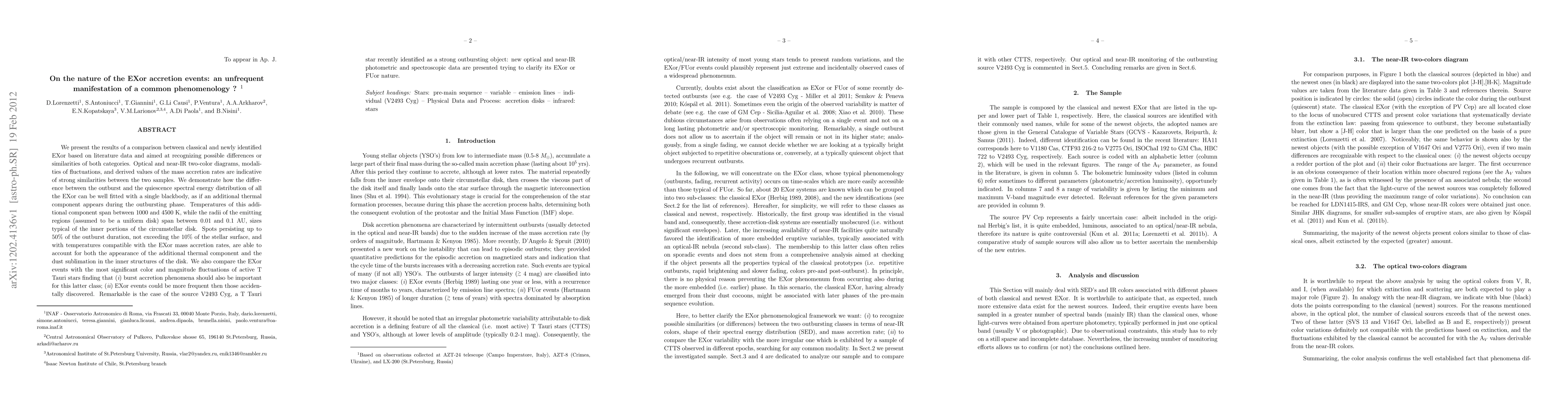 This paper compares classical EXor accretion events with newly identified ones, finding strong similarities in their optical and near-IR characteristics, mass accretion rates, and spectral energy distributions. It suggests that the additional thermal component during outbursts can be explained by persistent spots in the circumstellar disk.